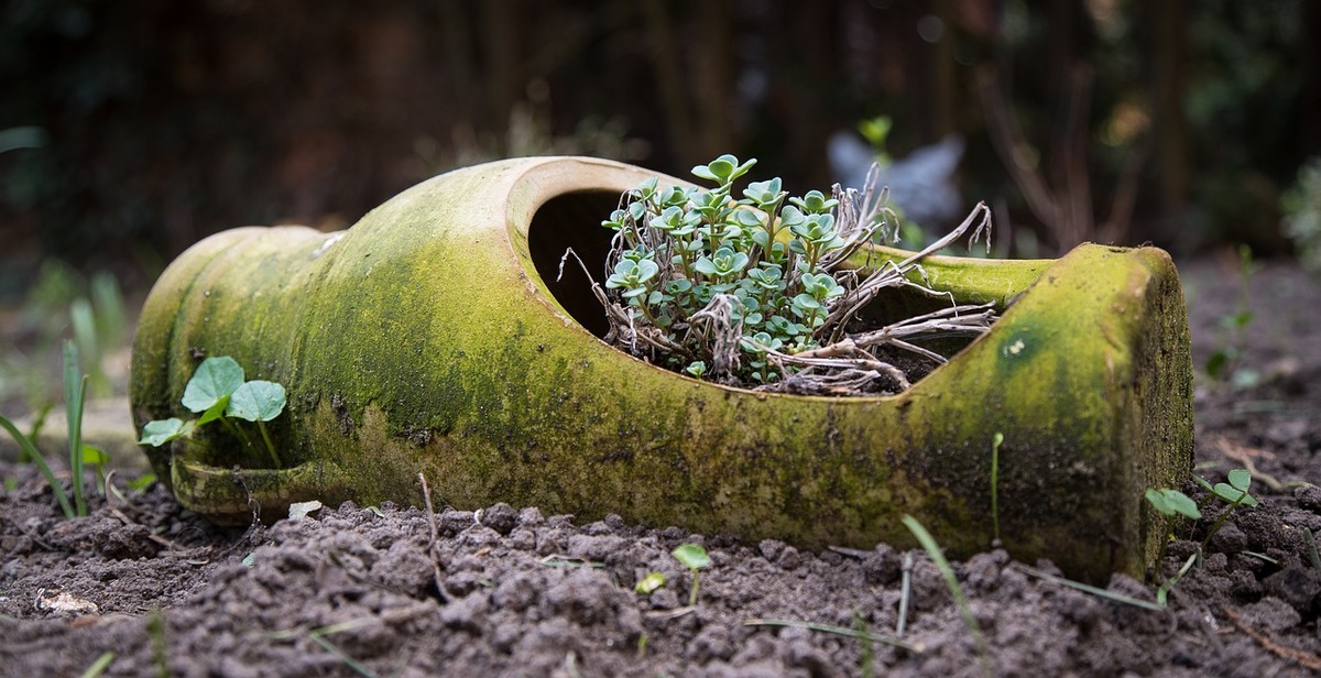 Nejlepší je umět najít a využít staré věci. Takové, které už zdánlivě k ničemu neslouží a jsou často zaházené jiným harampádím v dílnách a garážích. Starý nočník, starý zrezivělý kbelík, nejrůznější nádoby, poličky. Čím starší a ošklivější, tím lépe.