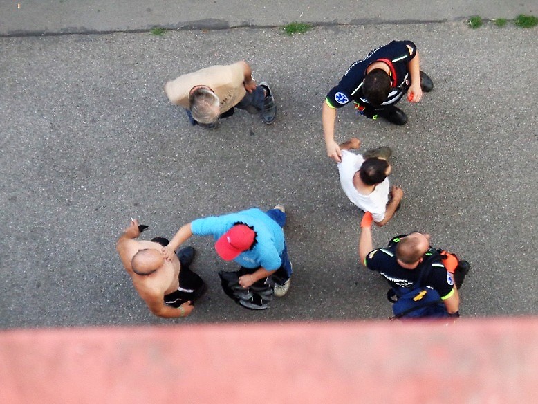 Mezi dva rváče vběhlo šest policistů, Ke skolení kriminálníků museli pomáhat i civilisté! Zkrvaveného dovedli do sanitky. Holohlavého dostrkali do policejního vozu. Ještě stačil vykřiknout, já jsem tu už zaplatil!