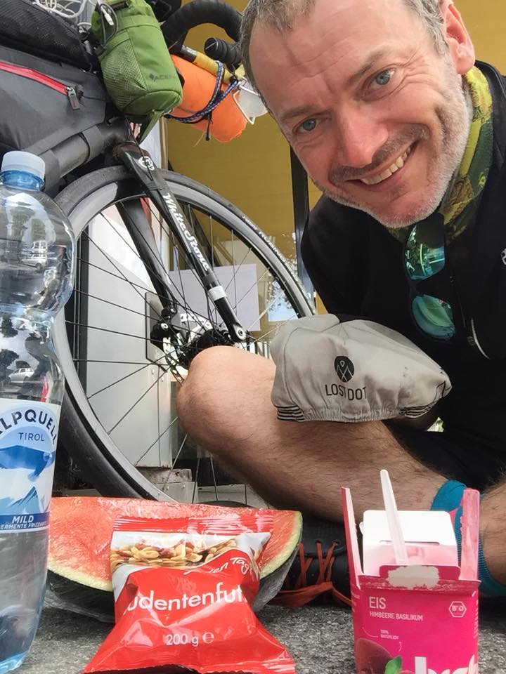 Ve čtvrtek závod pokračoval bez ohledu na počasí. Leoš už najel o 150 km víc, než je nejkratší trasa (která však nemusí být nejlepší). Jak můžete sami sledovat na https://www.transcontinental.cc/map, kde se zobrazuje pohyb jezdců v reálném čase, Leoš překonal Brennerský průsmyk, na počátku noci již urazil celkem 950 km a pokračuje dále ke slovinským hranicím. Druhý postupný cíl, sedlo Mangart (2072 metrů nad mořem), je ovšem ještě daleko, přes 100 km. Tam by se mohl dostat v pátek po poledni. Nyní si bude muset odpočinout, protože jel v jednom kuse 15 hodin. (A pro zajímavost: závod už vzdalo 16 jezdců z 254 a budou odpadat další a další. Jsou to prostě galeje, co?)