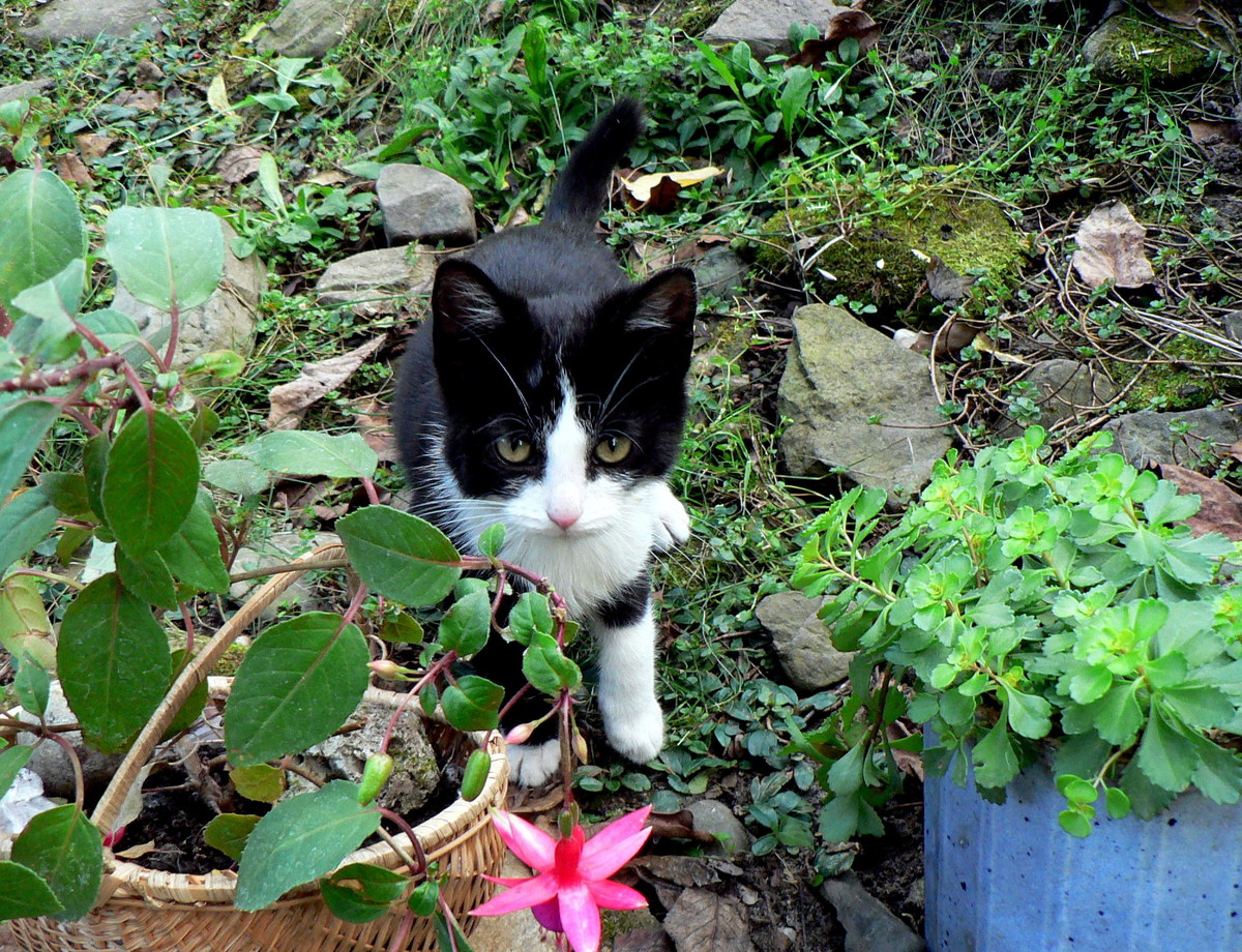 Když jsme si s manželem pořídili na důchod malý domeček na konci vesnice pod lesem a vyměnili tak bydlení v paneláku za bydlení uprostřed přírody, začali jsme přemýšlet o nějakém domácím mazlíčkovi. Netrvalo dlouho a našla si nás naše první kočka Rozárka. Bylo to vlastně ještě kotě, když nám zamňoukala u dveří. Na jaře se začala nějak podezřele kulatit a nakonec přivedla na svět pět krásných koťátek, pro která už jsme měli připravené budoucí majitele. Jedno z nich bylo ale výjimečné, byl to takový malý levhart, a tak jsme si to krásné koťě taky nechali.Tak nám přibyla drobná kočička Cinďulka. Rozárku jsme nechali vykastrovat, ale i její dcera se nechtěla nechat zahanbit, a i přes naše usilovné odhánění cizích kocourů byla připravená dát světu svoje potomky. Je však hodně subtilní, proto  byl porod hodně těžký. Přesto se narodili dva kocouři - černý Mikeš a dvoubarevný, vždycky čistý Šmudla. Hledali jsme pro ně nové domovy, ale nepodařilo se. "Odborníci" přes chov koček nás ujišťovali, že se stejně ztratí, že kocouři se toulají a určitě o ně příjdeme.  Jsou u nás už šest roků, a drží se doma jako klíšťata. Cinďula  žádná další koťata mít nemůže, proto nemusela ani na kastraci.