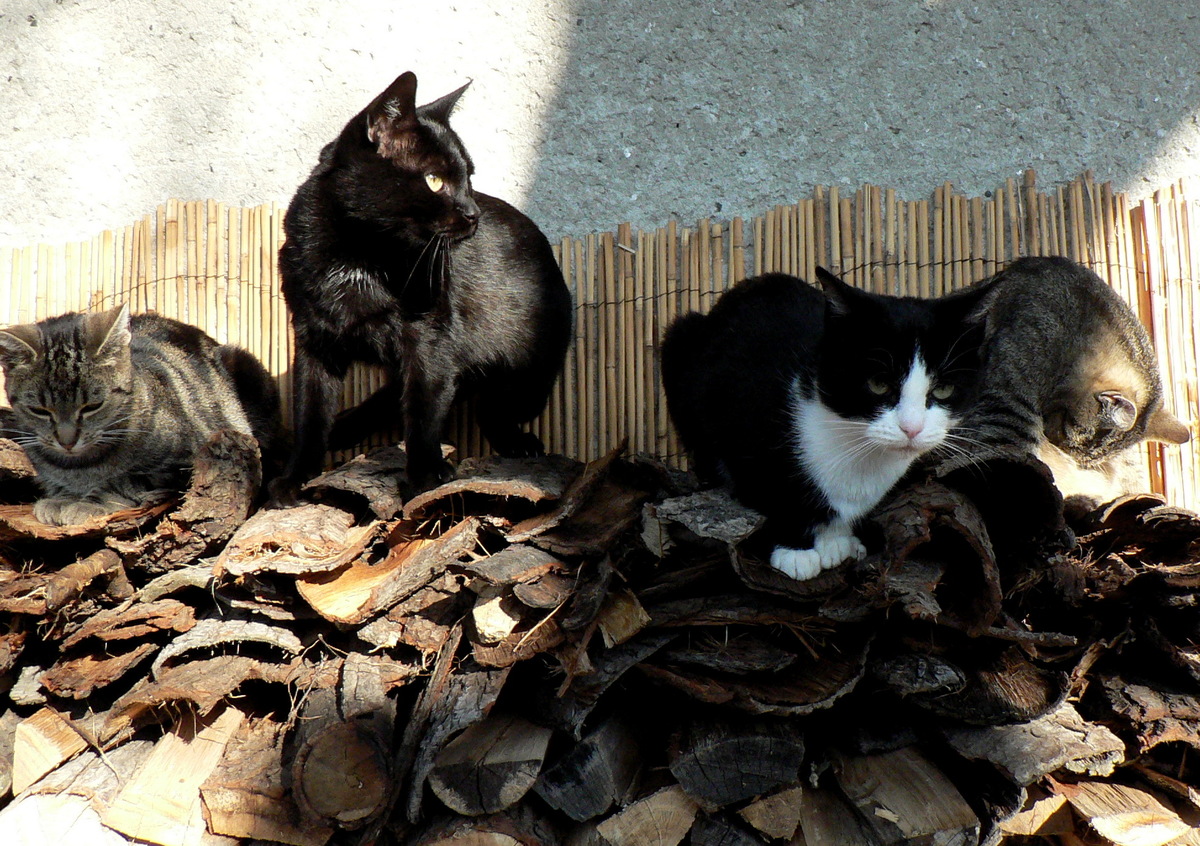 Takže máme doma trojgenerační smečku. Jsou to kočky venkovní, mají však v pronájmu nevyužívanou kotelnu. Když venkovní teplota klesne pod +5 stupňů, tak se jim zatopí a ony se tam rozvaluji v krabicích v teple a v suchu. Jsou velmi čistotné, chodí se venčit do krabice s pískem nebo na řepkové pole Agrofertu. Ani kocouři si naše okolí moc neznačkují. Nějak se ale rozkřiklo, že se u nás mají dobře a tak  sousedovic kočky a i ty toulavé k nám chodí na kus řeči a na kus žvance.  Já prostě kočky  m i l u j u  !!