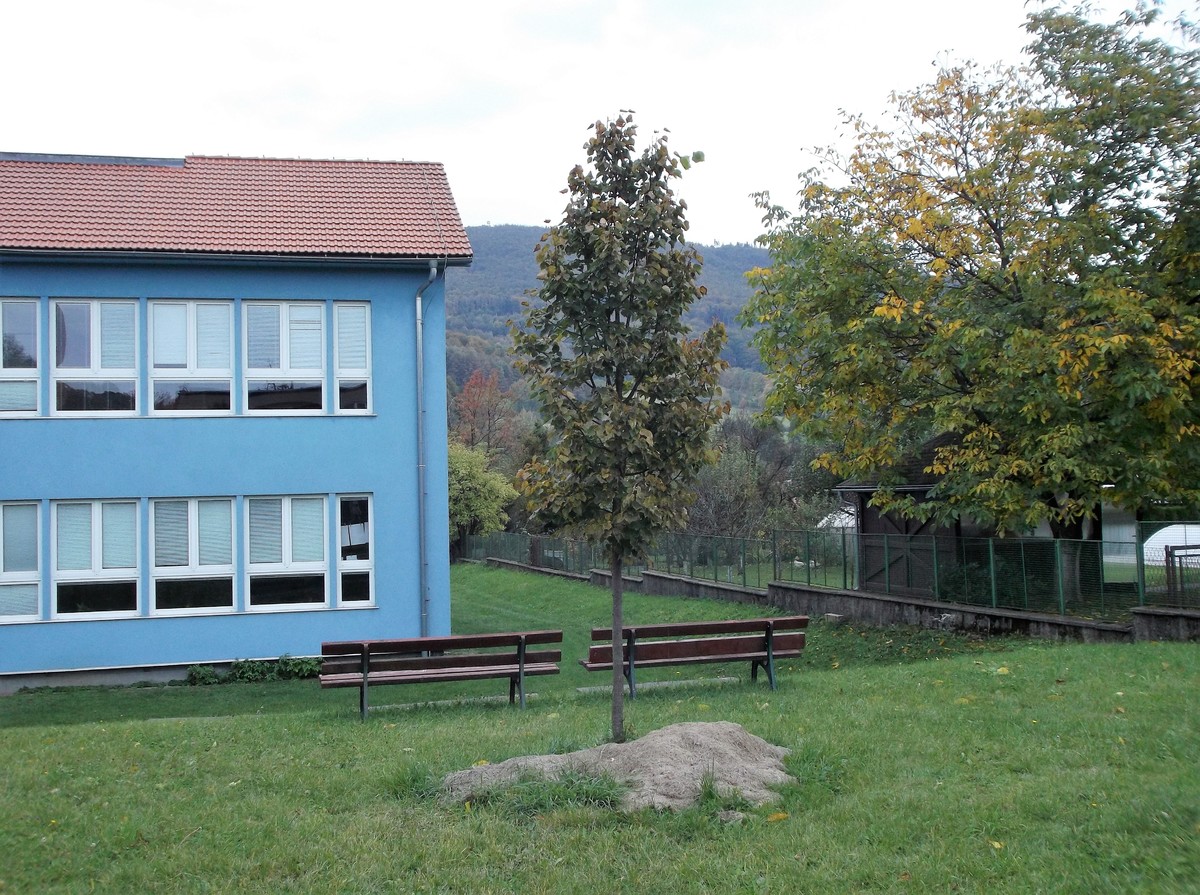 4. Zatím nejmladší a nejštíhlejší byl vysazen v roce 2013 v areálu základní školy. Odvážně natahuje větve k obloze a já mu přeji, ať z něho vyroste stejný krasavec jako z těch prvních dvou.