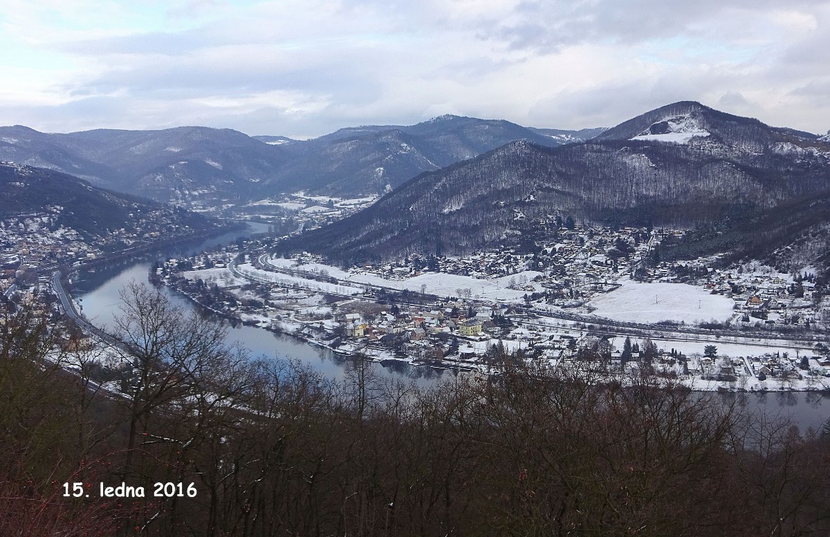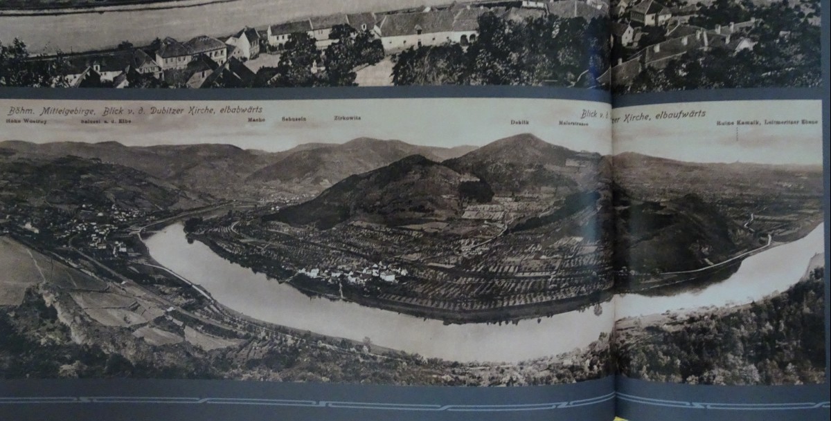 Jako základ ke srovnání jsem použila historickou fotografii z knihy Album starých pohlednic, České středohoří. Bohužel není datována, je však opatřena popisky psanými v němčině. Nejvyšší vrchol Deblík na druhé straně Labe je dnes bohužel řádně ohlodán těžbou kamene, což je vidět na fotografiích z novější doby.
