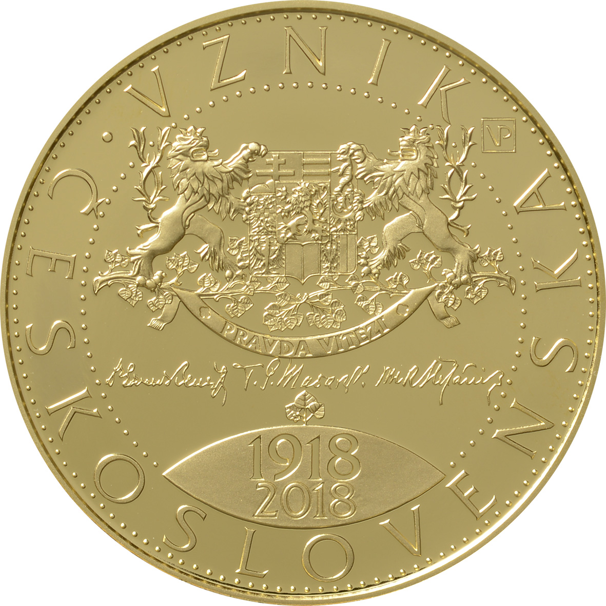 Česká národní banka připomněla 100. výročí vzniku republiky několika emisemi mincí, a to jak pamětních, tak oběžných. Blížící se výročí předznamenala dne 17. října 2018 emise stříbrné pamětní mince Washingtonská deklarace připomínající 100. výročí Prohlášení nezávislosti československého národa. O týden později, 23. října 2018, se uskutečnila mimořádná emise zlaté pamětní mince připomínající 100. výročí založení československého státu. Poté 24. října 2018 začala ČNB distribuovat speciální sadu oběžných dvacetikorun s portréty zakladatelů státu - Tomáše Garrigua Masaryka, Milana Rastislava Štefánika a Edvarda Beneše.