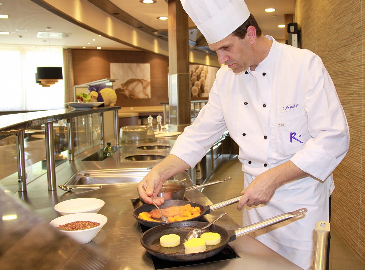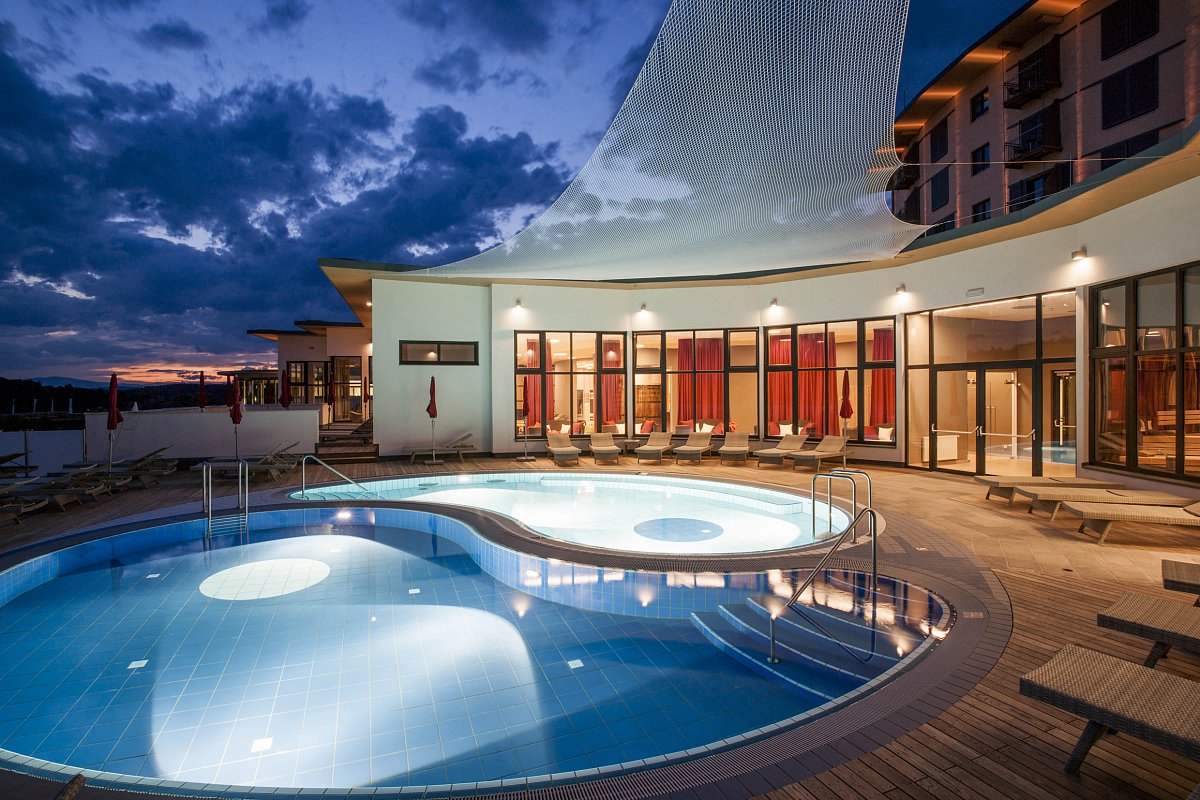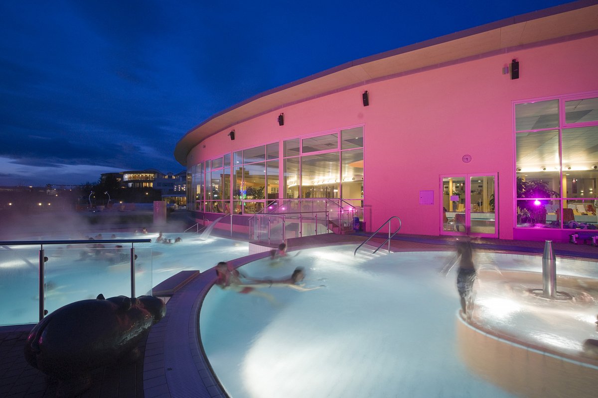 Areál samozřejmě disponuje i materiálními motivacemi. Třeba osmnácti bazény s různou teplotou vody až po 45 stupňů Celsia, díky kterým je možné využívat báječných koupelí i v zimě. Nemalý díl práce na pohodě hostů odvádí i gastronomie. Pod taktovkou Štýřana Josefa Urschlera je její hlavní parketou kuchyně regionálního zaměření, spolupráce s místními producenty a plné využití sezónní nabídky. K dispozici jsou báječné receptury ze sousedního Štýrska i tradiční krmě burgenlandské.