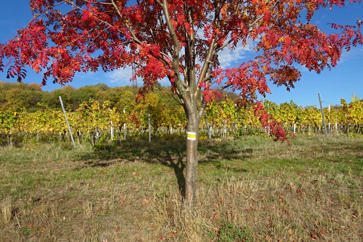 Chytíme si tu žlutou značku a můžeme vyrazit. Budete-li mít takové počasí, jaké jsem měla já 30. října 2018, můžete si blahopřát. Modré nebe zdobí pár bílých obláčků, za sebou na druhé straně Labe vidíme známé vinice ve Velkých Žernosekách. Ale vinice jsou i na tomto labském břehu a cesta vede mezi nimi přes Malé Žernoseky dál do Opárenského údolí, které právě tady má jeden ze svých konců. A vůbec se zdá, že Malé Žernoseky jsou dobré místo k žití. Je vidět, že zdejší radnice se dobře stará o svoje obyvatele, procházím kolem velkého sportovního a relaxačního areálu pro všechny generace.