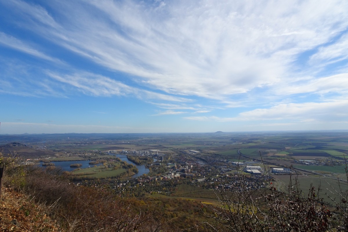 Opárenským údolím protéká Opárenský potok a já jdu proti jeho proudu. Cesta pod viaduktem s železniční tratí, která bohužel není v provozu, zvolna začíná stoupat. V prudší části je stoupání usnadněno upravenými tzv. Císařskými schody. V pohodě stoupáme a brzy se začne mezi stromy ukazovat vrchol i první ochutnávky výhledů jižním směrem přes Boreč, Lipskou horu a další vršky až k nejjižnějším vrcholům Českého středohoří. Dobře naladěni dorazíme až na vrchol, kde je vyhlídková terasa, místo k odpočinku s lavičkami a když přijdete ve správný den, tak i občerstvení. Spíše však doporučuji vzít si svačinku s sebou. Kruhový výhled je úchvatný. Dole leží město Lovosice se svým chemickým průmyslem, na obzoru je vidět Říp, nad Píšťanským jezerem se tyčí těžbou vykousaný Radobýl, v dáli lze zahlédnout Ještěd, maličká se odtud zdá skála nad Labem se třemi kříži, za ní Kamýk a Plešivec, Dlouhý vrch, Sedlo, jako modrá stuha se labským kaňonem vine Labe. K západu jsou vidět kamenolomy, které z Českého středohoří ukrajují pořádné krajíce, hory Kletečná a nejvyšší hora Milešovka a pohledem se vracíme tam, kde jsme začali, tedy někam k Lipské hoře, Borči, jižním vrcholům a kruh se uzavře pohledem na Hazmburk a znovu Lovosice. Náladu z výhledů trochu kazí jen stromy, které přerůstají vyhlídkovou terasu. Je čas, abychom se - nasyceni vyhlídkovými zážitky, které si snaživě odnášíme na zaplněné paměťové kartě ve foťáku, vydali na zpáteční cestu.