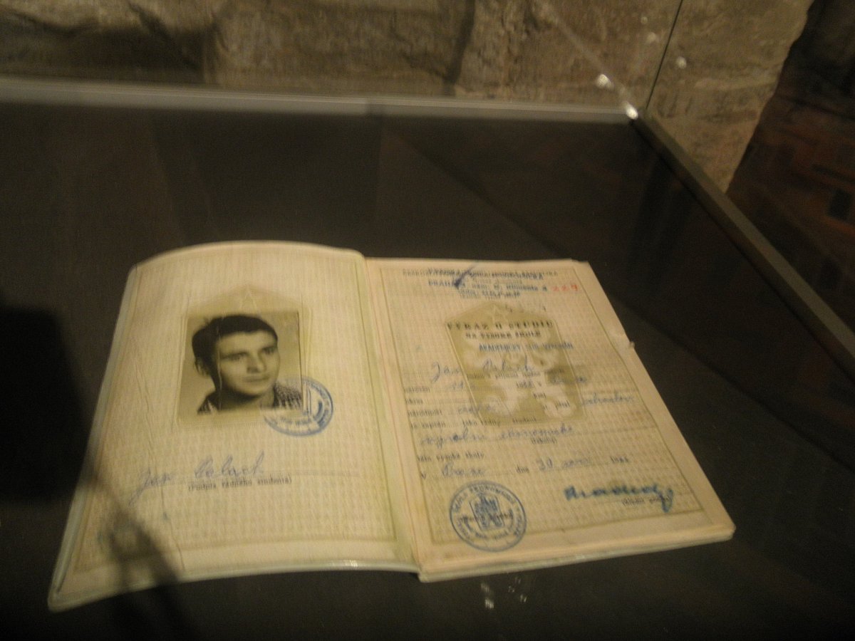 Snímky pocházejí z dobového Mladého světa, Palachova posmrtná maska od Olbrama Zoubka a Palachův vysokoškolský index ze stálé expozice Historie Univerzity Karlovy v Karolinu (foto Marcela Pivcová), dále je zde ukázka mé tehdejší básně a snímek z dnešní Legerovy ulice, kde na Klinice plastické chirurgie Jan Palach zemřel.
