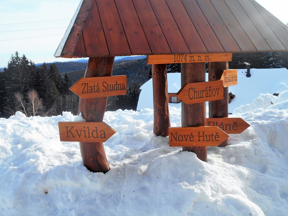 Dle internetu v 9.30 hodinu budu na místě a mám 4 hodiny času, což mně úplně stačí. Nechali jsme se vyvézt až na Churáňov a odtud někteří vzali běžky a jeli stopu a druzí se kochali nádhernými výhledy na okolní krajinu.