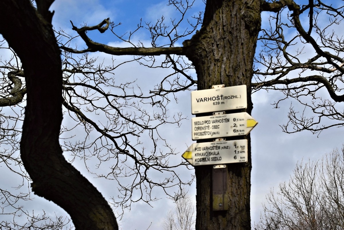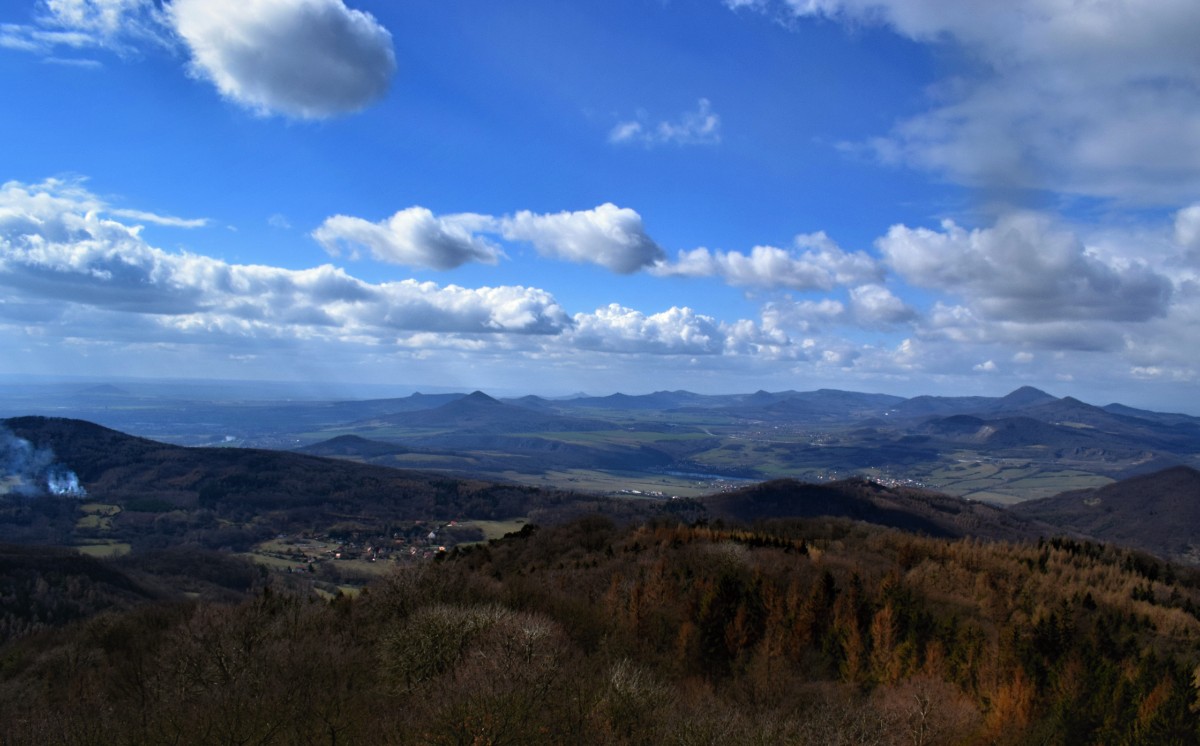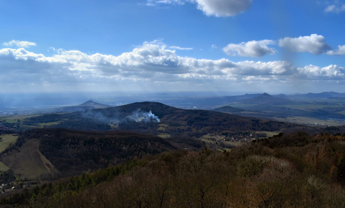 9. 3.2019 na Josefa, sluníčko přímo lákalo a vybízelo na výlet. Tak jsme tedy vyjeli, míjeli jsme Milešovku, byla pěkně vyfoukaná, jeli okolo Lovoše, až jsme dojeli do Litoměřic. V Litoměřicích jsme to stočili do prudšího stoupání a už jsme byli někde nahoře v úzkých silničkách. Přes dvě malé vesničky jsme dojeli pod zalesněný kopec a u úpatí ukazatel - směr rozhledna Varhošť.