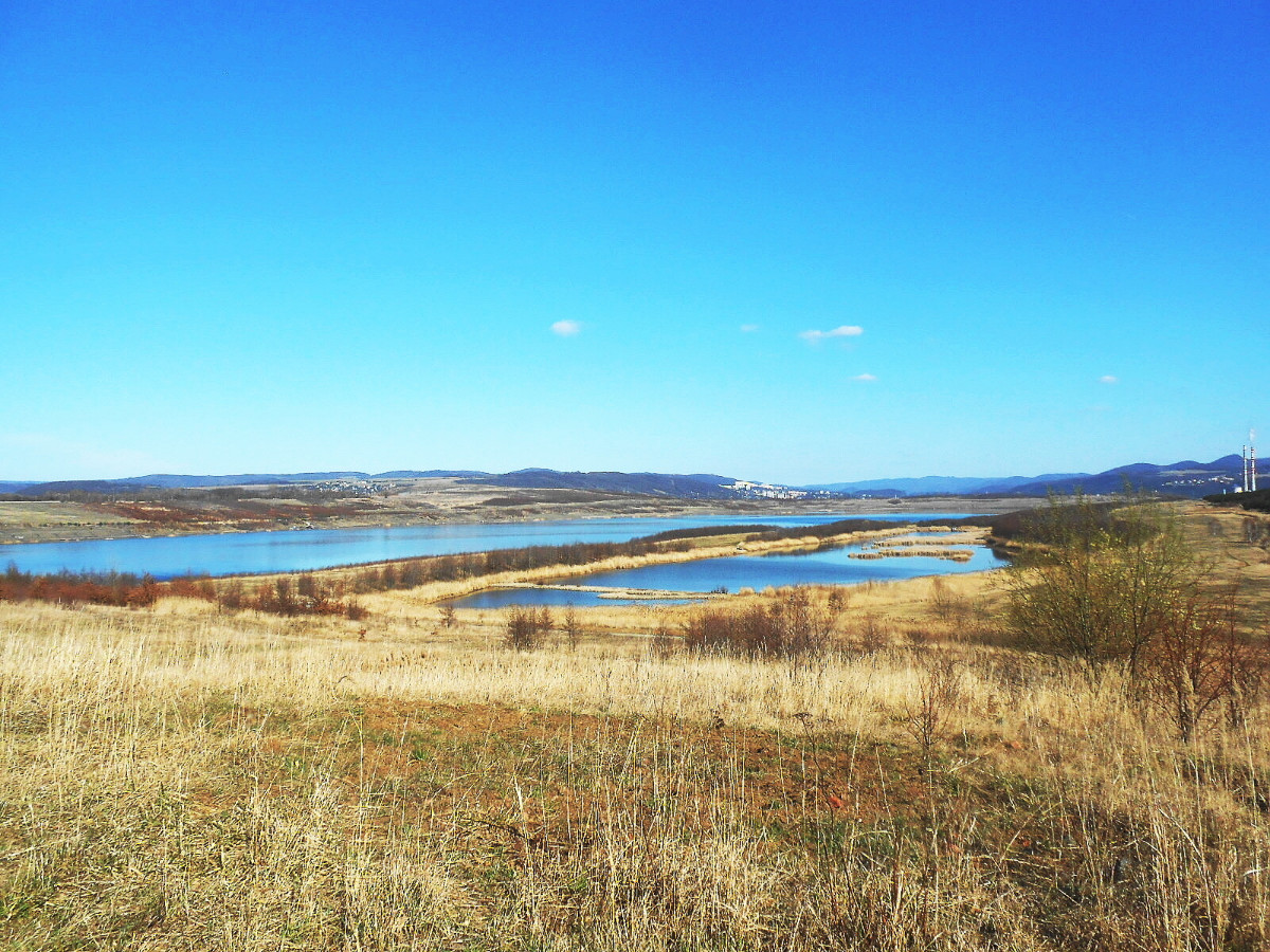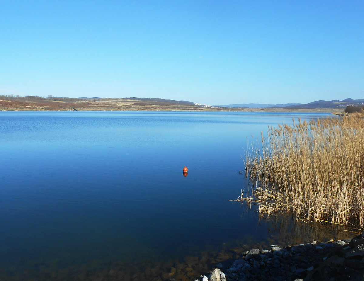 Jeli jsme ze strany od Roudník, tam je procházka hezčí. Když jsme se podívali z parkoviště na jezero, tak jsem si zprvu myslela, že je vypuštěné. Zdálo se mi nějaké malé, ale bližší pohled nás ujistil, že je vše v pořádku. Milada byla na svém místě, modro bylo dole i nahoře, slunce krásně svítilo a větřík nás decentně ovíval. Nejdřív jsme si mysleli, že tam jsme sami, ale postupně jsme potkávali pejskaře, kolaře, běžce a pár seniorů. Celkem čilý ruch, ale kupodivu tichý, dalo by se říct, zkrátka idyla. Klasik by řekl, jak poetické odpoledne.