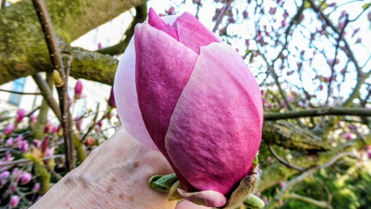 Naproti rozhlednám se nám naopak moc líbil park – rovněž rozkvetlý. Nejen zlatý déšť, růžové a bílé květy stromů, ale hlavně moje velmi oblíbená magnolie. S tou jsem se doslova pomazlila.