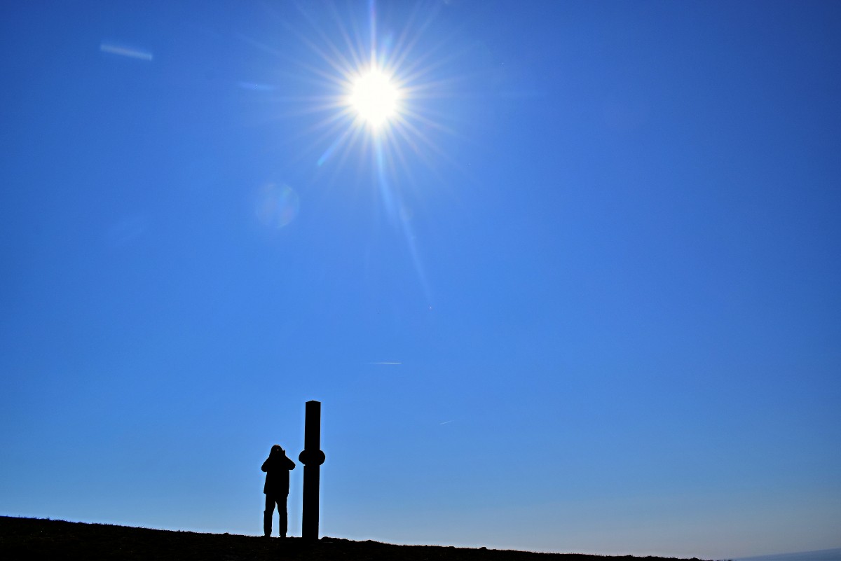 Na vrcholu je světelný maják pro letadla . A ještě jedna zajímavost -  umístění sloupu s vyznačením energetického bodu. A myslím, že jsem měla energie dostatek i po sestupu.
