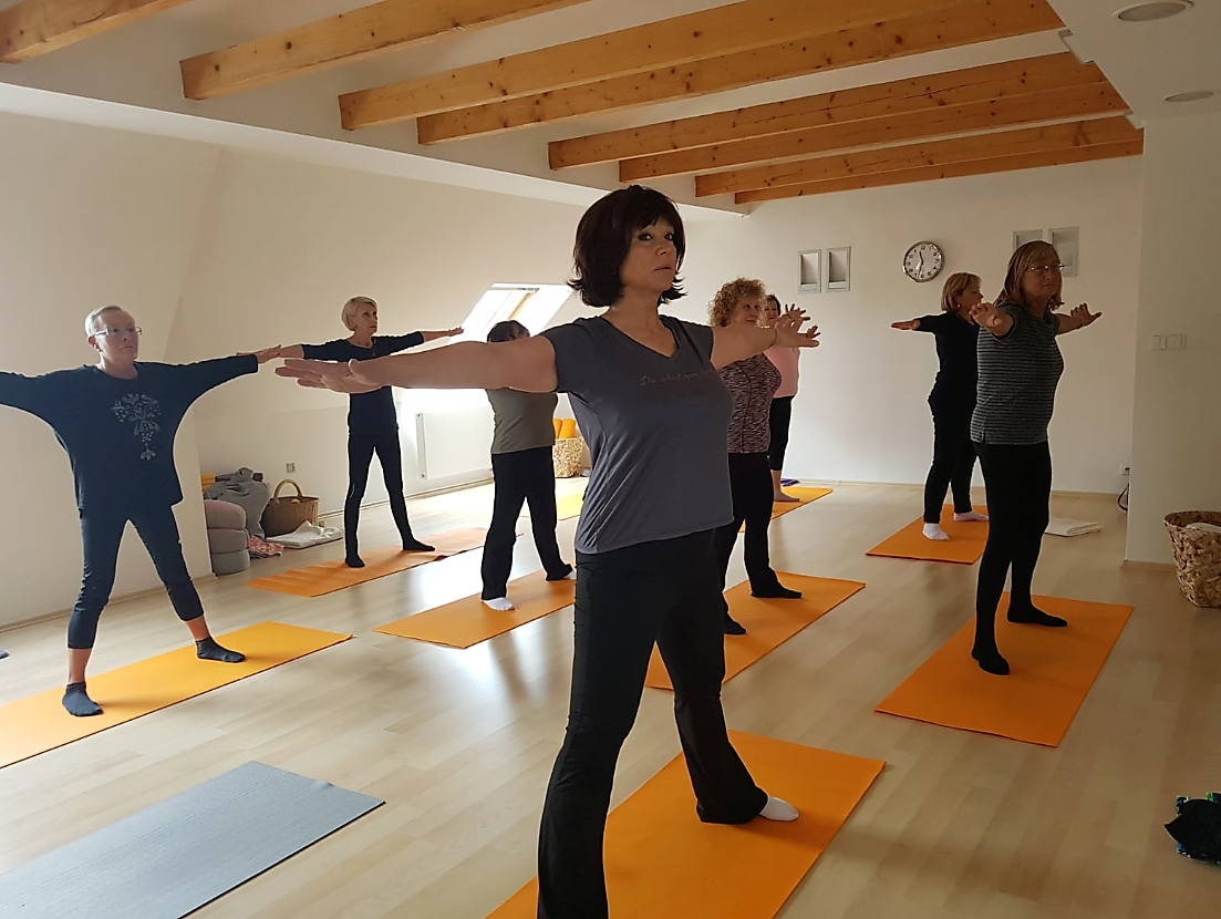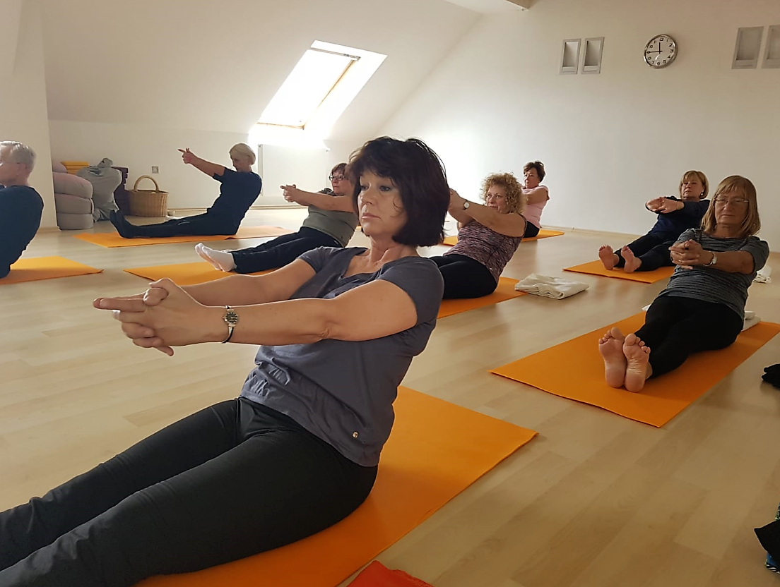 Jógu můžete cvičit v každém věku. Cvičení lze velmi dobře přizpůsobit každé věkové skupině, tedy i seniorům. U nás to vzniklo tak, že u mě jednou zazvonila sousedka a zeptala se, zda bych nezačala cvičit pro skupinu 60+. Tak jsme to zkusili, vypsala jsem nový kurz a hned na první hodinu přišlo osm žen. Od té doby cvičíme pravidelně a jogínek 60 + stále přibývá. I v tomto věku dokáže jóga zlepšovat fyzickou zdatnost a tím i zvyšovat kvalitu života. V lekcích pracujeme se svaly a klouby tak, abychom to i ve vyšším věku zvládly a zároveň nám to pomáhalo.