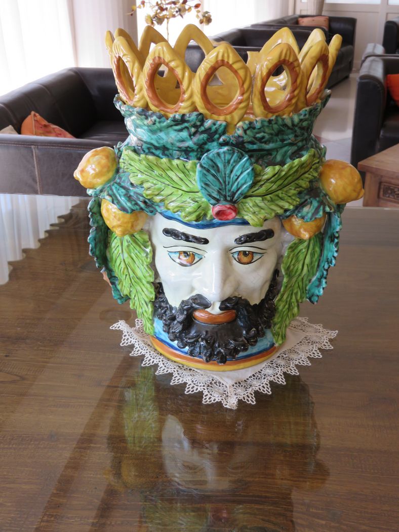 Na našich cestách po Středomoří, hlavně tedy v Itálii, ale i Řecku, jsme se setkávali se zvláštním symbolem provedeným v keramice. Byl hlavně u vstupních bran či dveří vil nebo zahrad, na Sicílii jsem ho viděla i jako ozdobu v hotelové hale a potom v krámcích s keramikou, a to ve všech možných barvách. Vypadalo to na první pohled jako hrozen vína, ale rostoucí nahoru.