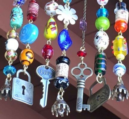 Pár laciných korálků nebo sklíček může na balkoně či na zahradě vytvořit zážitek, který majitele potěší a návštěvu překvapí. Podobný sestavám se říká někdy také lapači snů, někdo je nazývá odháněči dešťů.