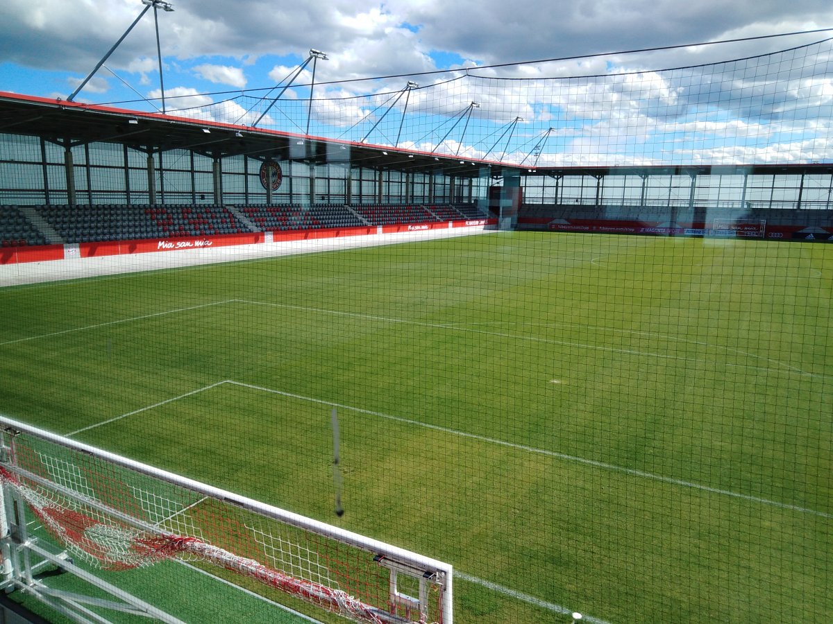 Cestu ke campusu lemují klubové vlajky a loga, všechny nápisy na moderní budově jsou v klubové barvě, aby bylo jasné, kde se návštěvník ocitl. FC Bayern Campus byl otevřen před dvěma lety hlavně jako tréninkové centrum mládeže ve věku od devíti do devatenácti let. Když se ale začalo dařit i ženskému týmu a dvakrát po sobě vyhrál ligu, vedení klubu rozhodlo, že si zaslouží sídlit v nových prostorách. Na poslední chvíli se proto dělaly úpravy – například se rozšiřovaly šatny.