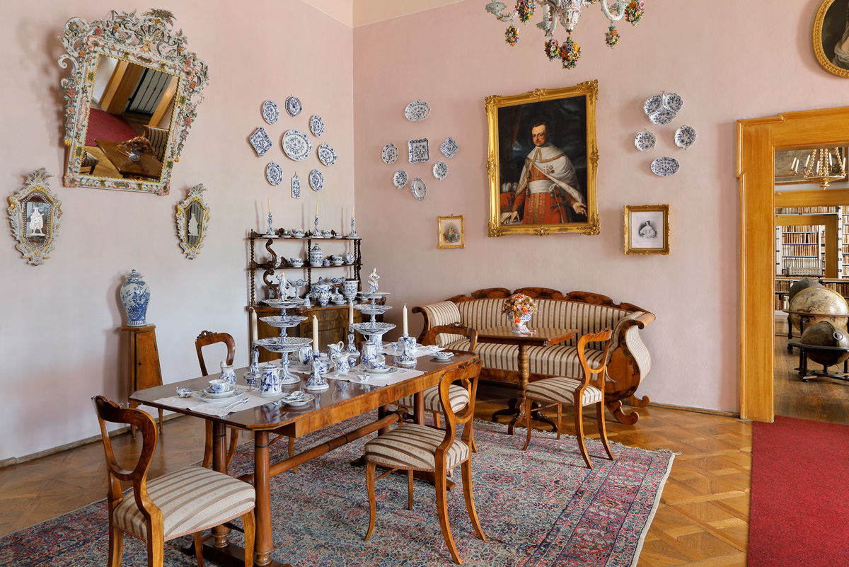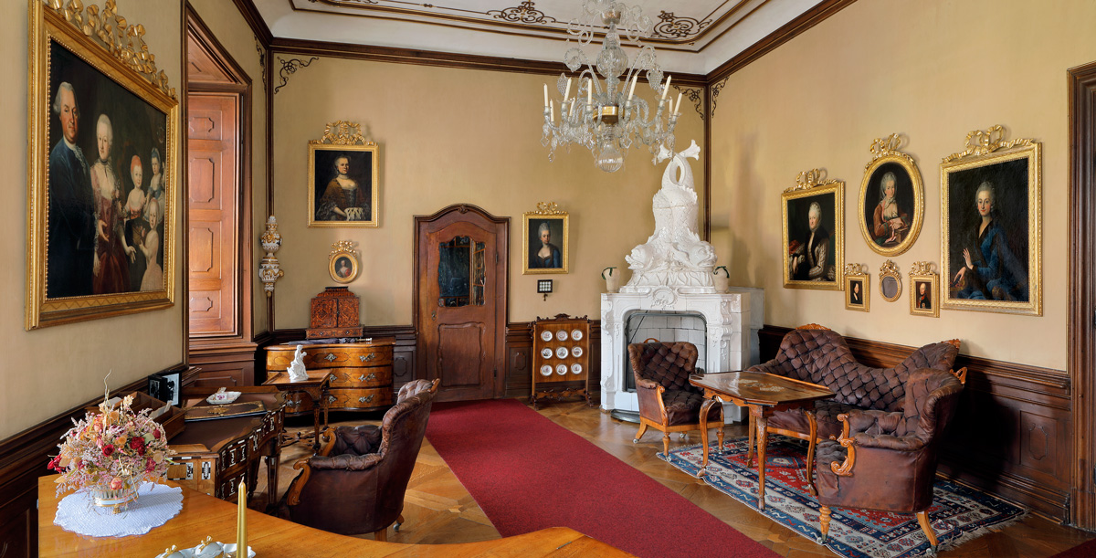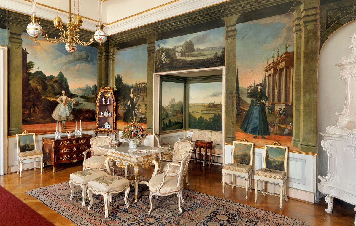 Dobové valdštejnské interiéry obsahují vzácné sbírky jako například delftskou fajáns, míšeňský, japonský a čínský porcelán, kostýmy, zbraně, unikátní historické divadlo s funkční mašinérií a knihovnu s 22 tisíci svazky, kterou spravoval Giacomo Casanova na zámku Duchcov. V kapli sv. Anny jsou uloženy ostatky slavného vojevůdce 30leté války Albrechta z Valdštejna.