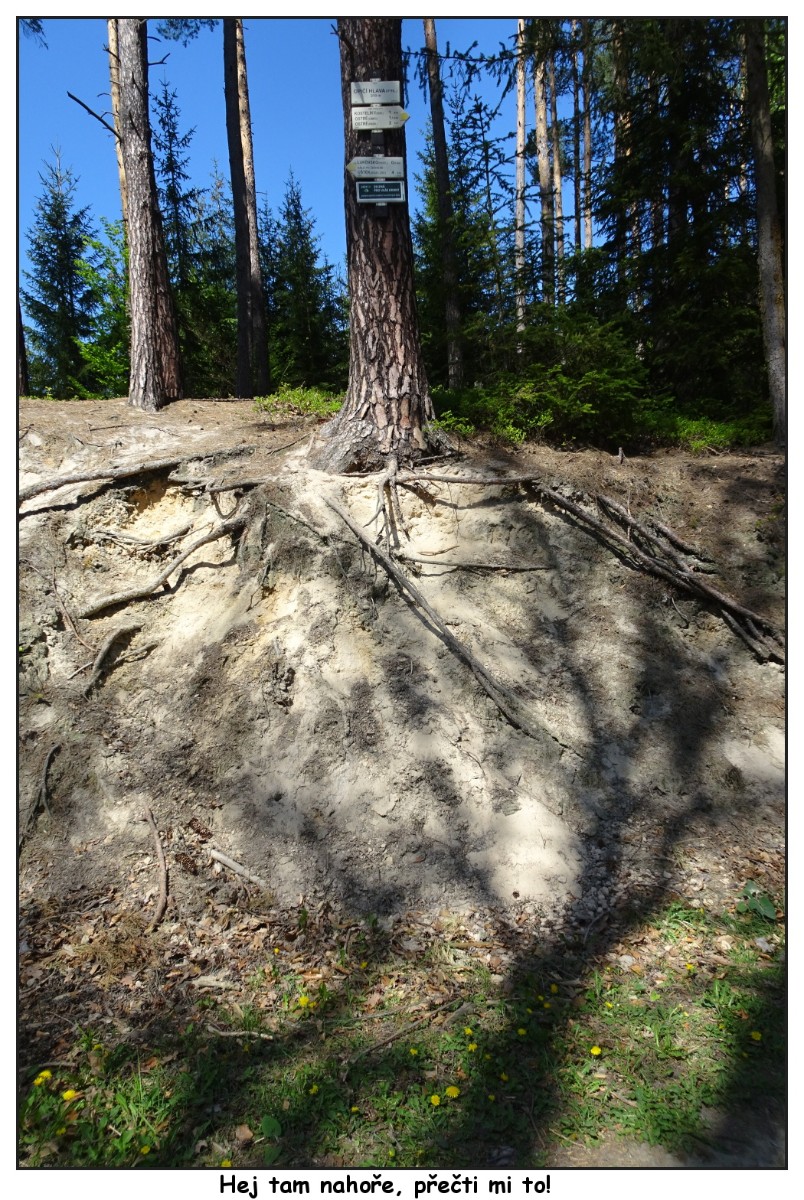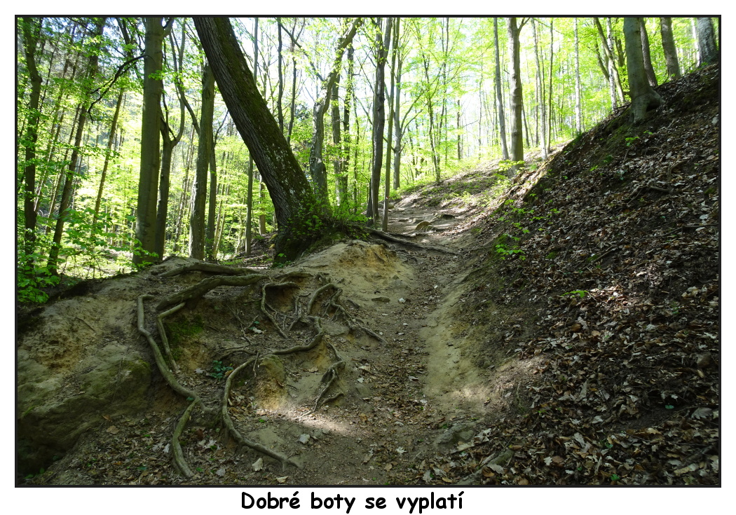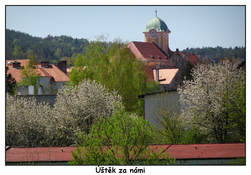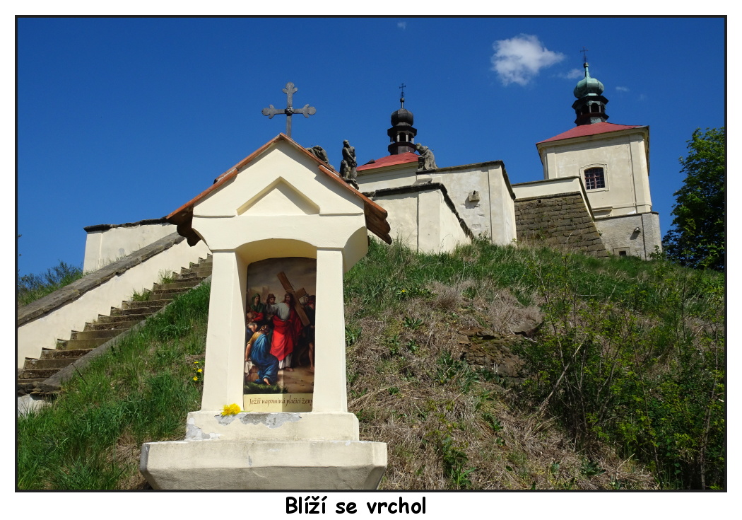 Naše putování začneme u odbočky ze silnice za Úštěkem, kde si chytíme červenou turistickou značku. Ta nás povede přes Svobodnou ves až na rozcestí, kde přestoupíme na žlutou. Právě tady jsem potkala jediného člověka za celý den a ten se mě zeptal, kudy do Úštěka. Zato já jsem se ho bohužel nezeptala, kudy k opičí hlavě, čehož jsem litovala, hned jak zmizel za zatáčkou. Žlutá značka nějak nebyla k nalezení, a tak jsem si cestu zase o něco prodloužila. No, to nevadí, aspoň jsem nezůstala nic dlužna své pověsti bludičky. Druhá z cest byla ta správná a nakonec jsem ještě zjistila, že se spojila s tou první, ale když to nevíte ... dodnes nevím ani to, jestli jsem na vyhlídce na opičí hlavu vlastně byla nebo ne. Zkrátka jsem ji nenašla. Nicméně cesta vede příjemným lesem a zvolna stoupá a po chvíli je vidět Kalvárie hezky zezadu. Představa, že k ní zezadu taky přijdeme, bere záhy za své. Cesta vrch pěkně obtáčí a první kaplička, tedy zastavení křížové cesty, probleskne mezi mladým jarním listovím. Tu víme, že jsme na místě.