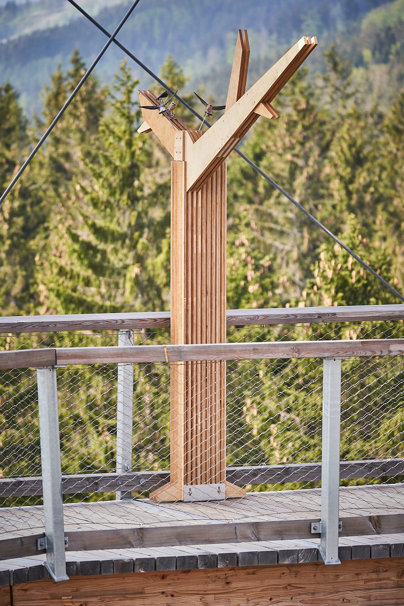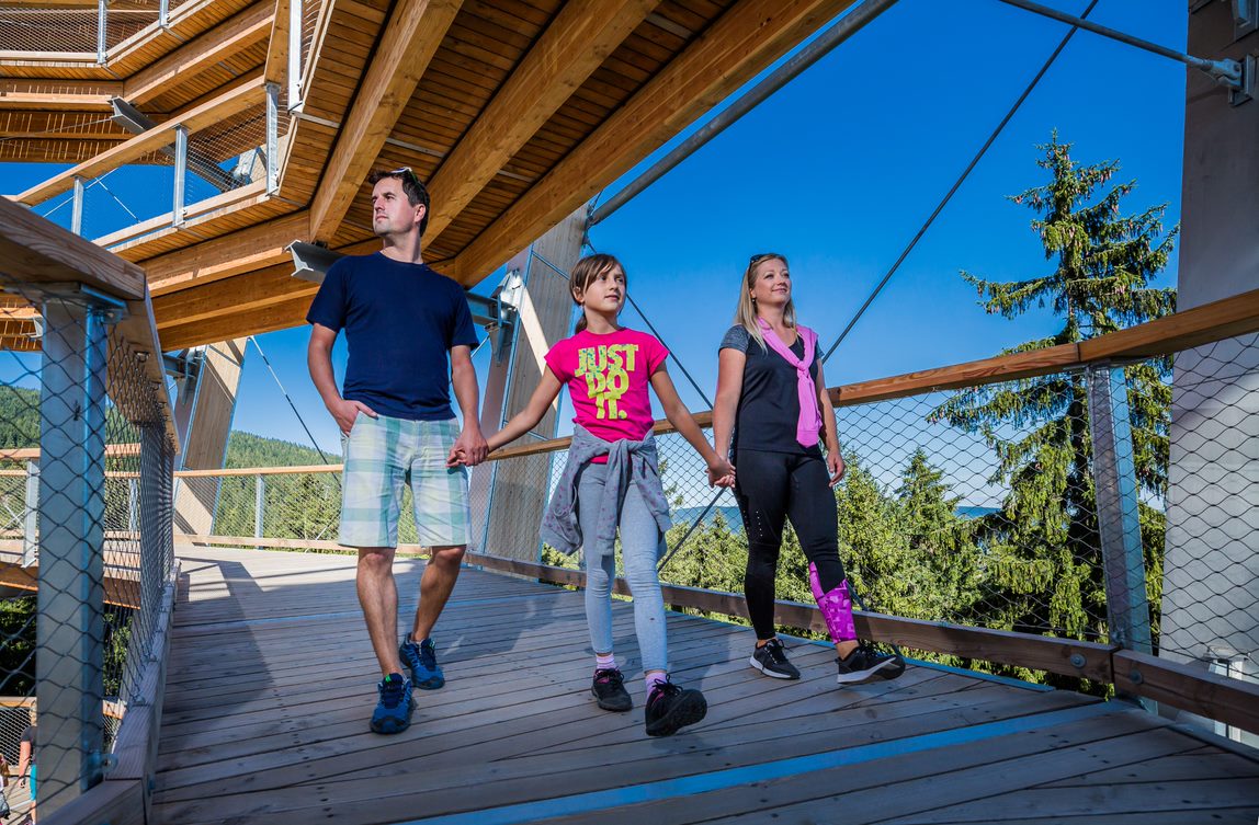 Hned po prvních sto metrech se ocitnete 23 metrů nad zemí, les šumí, ptáci zpívají své árie a můžete se tu i vzdělávat. Jsou tu informační tabule se zajímavými informace, dřevění ptáci v životní velikosti, ale i čtyřicet kukátkových cedulí. Jsou namířené na lesní zajímavosti – mech či lišejníky.