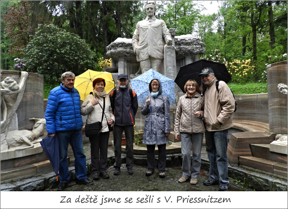 Mimo jiné jsme v květnu v Jeseníku měli také takové malé setkání i60. Ač nás bylo jen sedm, byli jsme ze čtyř míst, a to z Ostravy, Zlatých Hor, Mikulovic a Jeseníku. Nejdříve pršelo, jen se lilo, ale pan Priessnitz nás poučil, že studená voda léčí. A pak nám počasí ukázalo vlídnější tvář.
