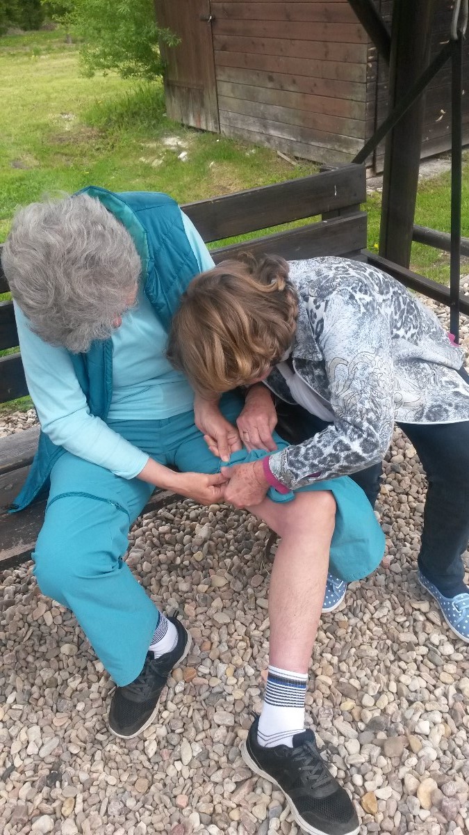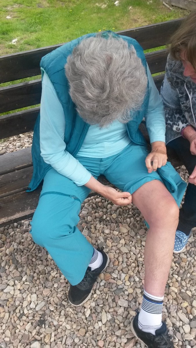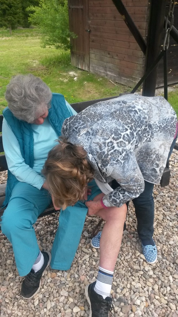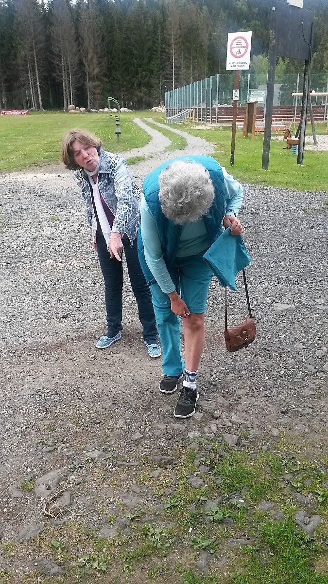 Konec lenošení, zavelela jsem, jde se turistovat! Rýha na čele od klandru dodala mému povelu vážnost. Pavle se pomalu vyrovnaly ďolíky po oblázcích, uhladily jsme zmuchlané nohavice a Jitka překotně připínala ty své. Ale ouha, ono to nebylo jednoduché. Jaksi to nechtělo pasovat.Tak druhý pokus na druhou nohu. Zase nic, navíc se zip zadrhnul a nešlo s ním hnout. Pavla, hrdá na svoji praktičnost, přispěchala na pomoc. Nohavici přikládaly, odkládaly, otáčely, studovaly, prohlížely stehno, zda je její vlastní...ale nohavici nepřipnuly. Jitka je hodný člověk, smířený s osudem, a byla ochotná špacírovat s jednou nohou obnaženou. Ale i my jsme hodné, zavedly jsme ji do pokoje, vysvlékly z kalhot, chvíli v zadumání přemýšlely a nohavice připnuly. To bylo radosti, mohly jsme vyrazit za krásami Jizerských hor. A to je konec pohádky o zlobivé nohavici v Kořenově.