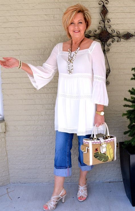 Když si starší dáma vezme k jednoduchému bílému tričku elegantní kalhoty a zlaté boty, může jít do společnosti. Když má ke stejnému tričku džíny a tenisky, může na výlet. Přitom je to pořád to samé tričko. Jistě, nemělo by jít o laciný kousek z tržnice, který po prvním vyprání vypadá mizerně. Nicméně i ve středních cenových kategoriích je nyní velká nabídka a každá žena si může vybrat střih, který jí sedí. Podobné je to s košilemi, halenkami, tunikami. Bílá je prostě slušivá klasika, která k létu patří. Jde jen o to vybrat správný střih a materiál.