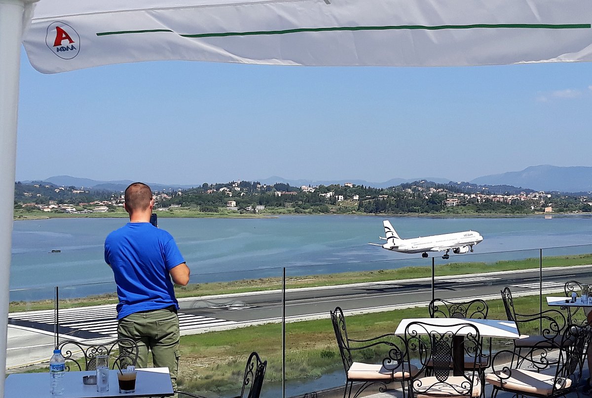 Tak to je Kanoni, poloostrov blízko města Kerkyra na ostrově Korfu. Místo, které budete buďto milovat nebo nenávidět. Nenávidí ho zejména ženy, jejichž muži se rozhodnou, že místo toho, aby leželi na pláži, stráví krásný letní den koukáním na letadla. A tak na terase zní ve všech představitelných jazycích tyto rozhovory: