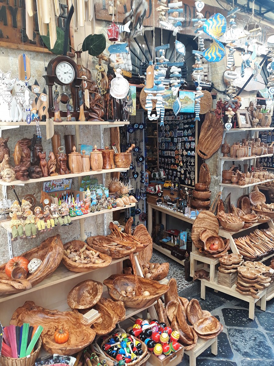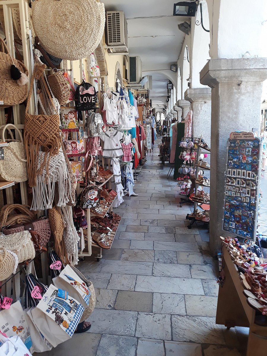 Obdivování to každopádně bude. Většina lidí je uličkami staré Kerkyry okouzlena. Především člověk neví, kam se dívat. Obchůdky jsou malé, doslova přeplněné zbožím. První dojem: Typické cetky pro turisty. Bližší prozkoumání: To je hezké, to je docela kvalitní, to je přímo umělecké dílo.