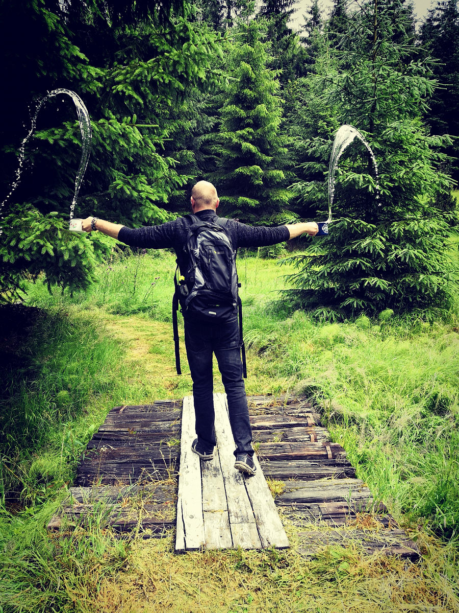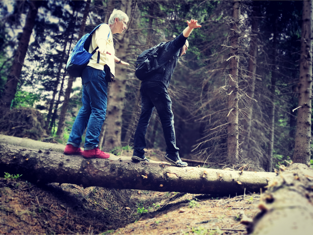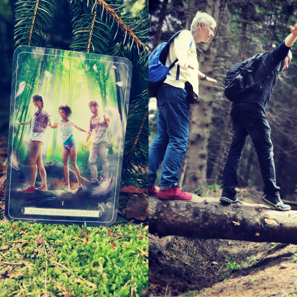 Luky měl sebou kartu dobrodružství, jakoby andělé dle našich zážitků ji namalovali. Zřejmě nám jsou na našich cestách v patách. Jeden snímek, jak našlapujeme po kládě stromu i s Megí vzniknul daleko dříve, než se k nám dostala karta dobrodružství. Více, než tajemné to je.