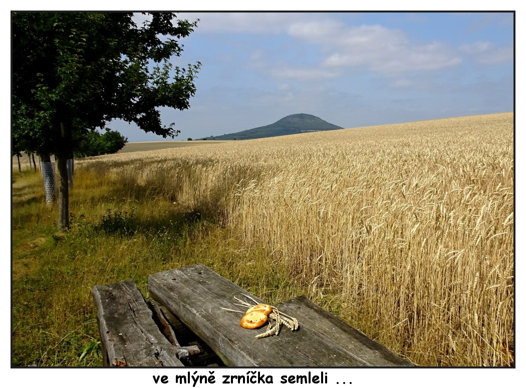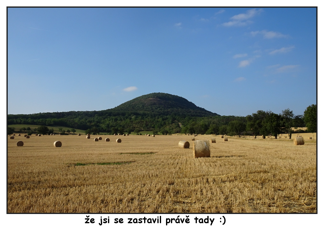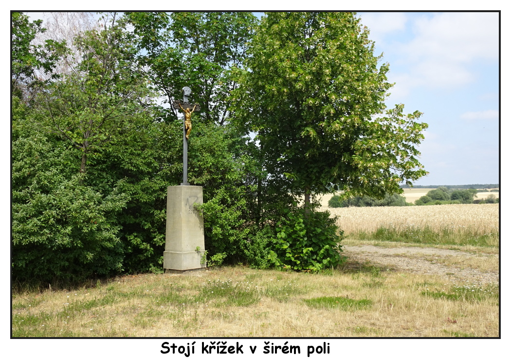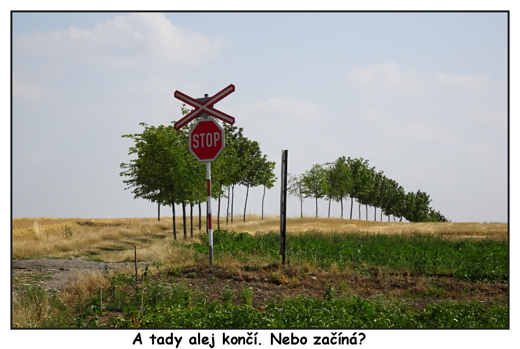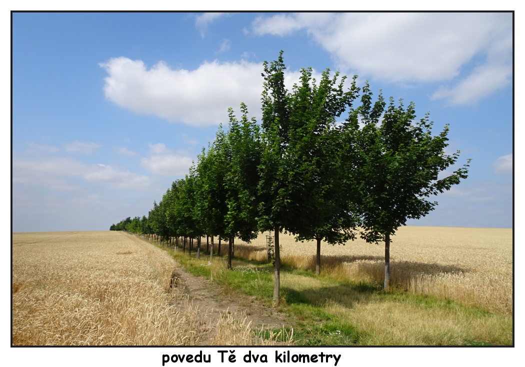 Stojíme nyní u přístřešku za Ledčicemi s obnoveným křížkem, za zlatavými lány vykukuje na obzoru Říp a záhy nás čeká pomyslná brána se vstupem do aleje. Věřte mi, že putování alejí mezi klasy je velmi romantické a já si v duchu znovu opakuji díky praotci Čechovi, že zůstal právě tady. Alej končí u železničního přejezdu u obce Kleneč, která už je přímo pod Řípem. Modrá značka vede skrz vesnici až pod Říp, kde se nakonec barevné nitky spojí a dovedou vás nahoru na Říp. Já jsem tentokrát nahoru nevystoupila, ale obešla jsem ho a sešla známou alejí do Rovného na druhé straně Řípu. Na mě tam čekal odvoz, ale vy můžete dojít pěšky až do Roudnice nad Labem a jet vlakem do Prahy. Trasa Ledčice - Roudnice nad Labem je dlouhá 12 km. Pokud jste do Ledčic přijeli autem, nezbyde vám než se tam vrátit. V Ledčicích jste autem z Prahy po D8 za necelou půlhodinku nebo se tam dostanete autobusem.