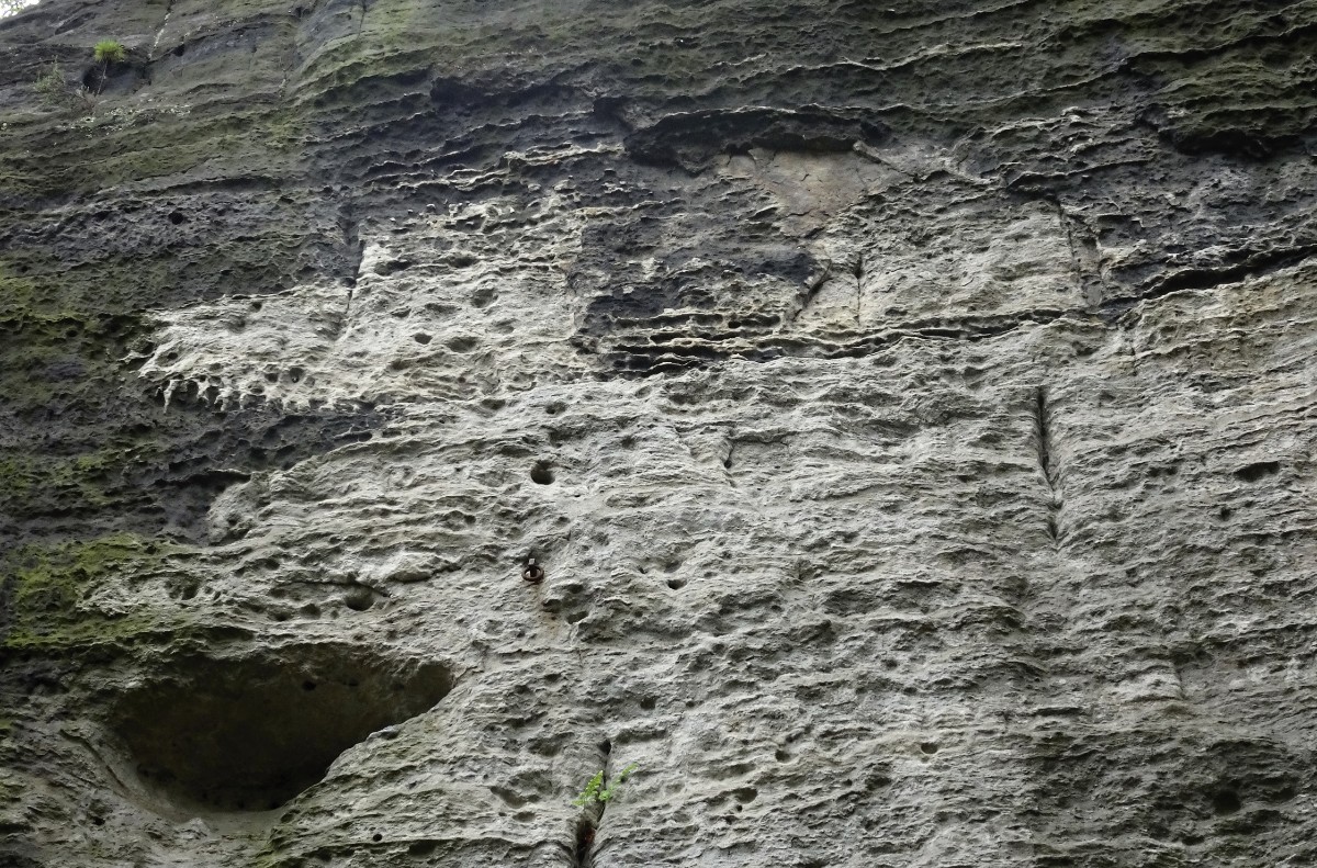 Na levé straně je vstup do Malých Tiských stěn. Nemávejte nad jejich "malostí" rukou a projděte si je, stojí za to. Na pravé straně je vstup do Velkých Tiských stěn. Celými skalami vás bezpečně provede naučná stezka. Zatímco na jižní straně se jedná o opravdové souvislé svislé stěny, dosahující výše kolem 600 m, severní strana je v důsledku zvětrávání pískovce plná nejrozmanitějších skalních útvarů, sloupů, věží, převisů, jeskyněk, okének, náměstíček. Většina skal má svoje názvy, mě trochu mrzelo, že třeba u těch nejznámějších nejsou tabulky. Stejně jako jiná skalní města, i Tiské stěny jsou rájem horolezců. Zahrály si i v mnoha filmech včetně Letopisů Narnie. Na konci naučné stezky najdete půvabnou útulnu. Zatímco vy jste se proplétali mezi skalami, zdejší kuchyně se starala o vaše následné blaho. Zajímavé je, že v den, kdy jsem tu byla já, pokladna na tomto konci byla zavřená, takže můžete zkusit štěstí a ušetřit oněch 30 Kč.