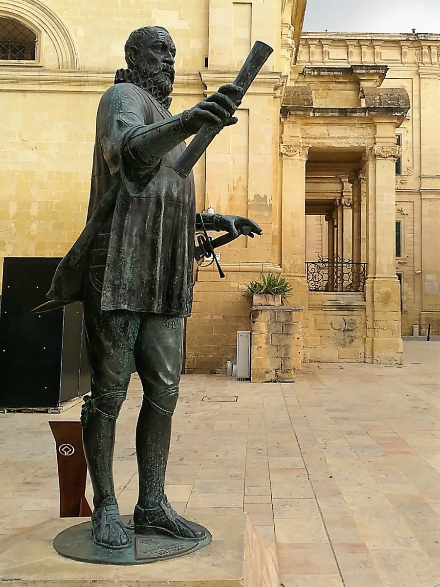 Na závěr dne jsme vzdaly hold zakladateli tohoto hlavního města Malty. Respektive, obdiv k němu jsme vyjádřily u jeho sochy -  velmistra Jeana Parisota de la Valette z řádu sv. Jana. Původem byl francouzský šlechtic, narozený roku 1494 (možná 1495)? Proslavil se jako zachránce ostrova Rhodos při osmanském obléhání. Pak se přeplavil na Maltu. Zde nechal vybudovat masivní opevnění, čímž pomohl odrazit nápor dalších Turků. A byl to právě on, kdo zde položil základní kámen k budování hlavního města – to bylo pojmenováno Valletta.