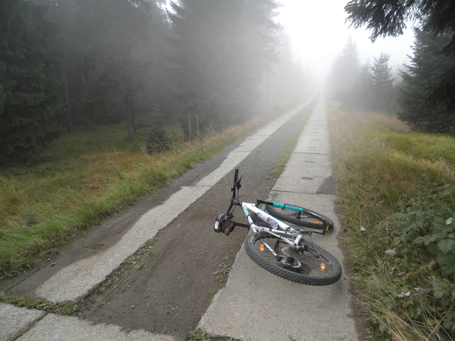 Na kole, v kopcích, za nepříjemné mlhy, kdy je vidět na pár metrů, slyším nějaké pravidelné štěrchání… tssc, tssc, tssc… Sakra, něco mi asi plantá v batohu, přestanu se vrtět, ale zvuk slyším stále. Že by to byla závada na kole? Přestanu šlapat a pořád to slyším. Nakonec zastavím, slezu, ani se nehnu a zvuk je tu furt a zesiluje. A pak se z mlhy za mnou, na silnici, vynoří holka na kolečkových lyžích. Trénuje na zimu na běžky a jede už kilometr za mnou. Chm…, prej mimozemšťani.