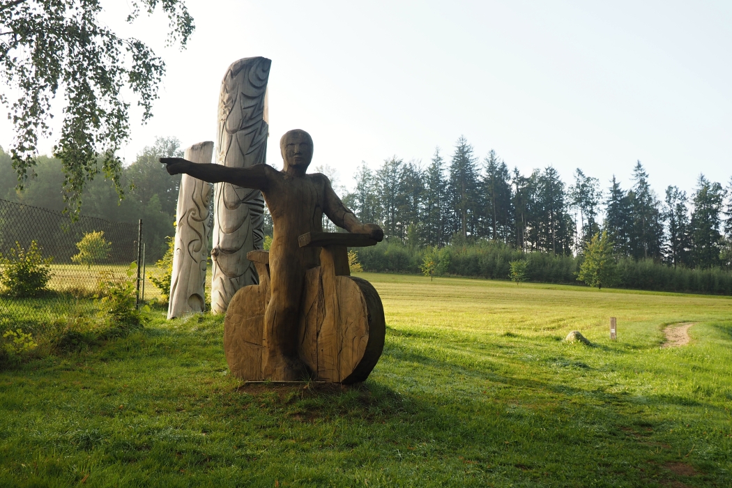 Na parkovišti u Bobřího sudu do mě hučí paní, co vybírá parkovné, ať si zaplatím delší dobu, že vidí kolo, co mám v autě, a že tady jsou krásné cesty pro cyklisty, pohodlné a s vyhlídkami, že se mi tu bude líbit a určitě se zdržím. Tak jo, platím sazbu za celý den a popojedu pár metrů na parkovací místo. Vystoupím, přede mnou sedí na lavičce cyklista v dresu, celej nějak nakřivo. V žertu si připomenu, že takhle nakřivo jsem byl vloni, když jsem se rozsekal na kole v Bechyni a pochroumal si rameno. Vtom přichází paní od parkování a volá na cyklistu: „Sanitka tu bude hned, jestli je vám špatně, tak si máte lehnout a dát nohy nahoru“.  Ani nevyndám kolo, udělám si jednu fotku Sudu a v pěti minutách odjíždím…