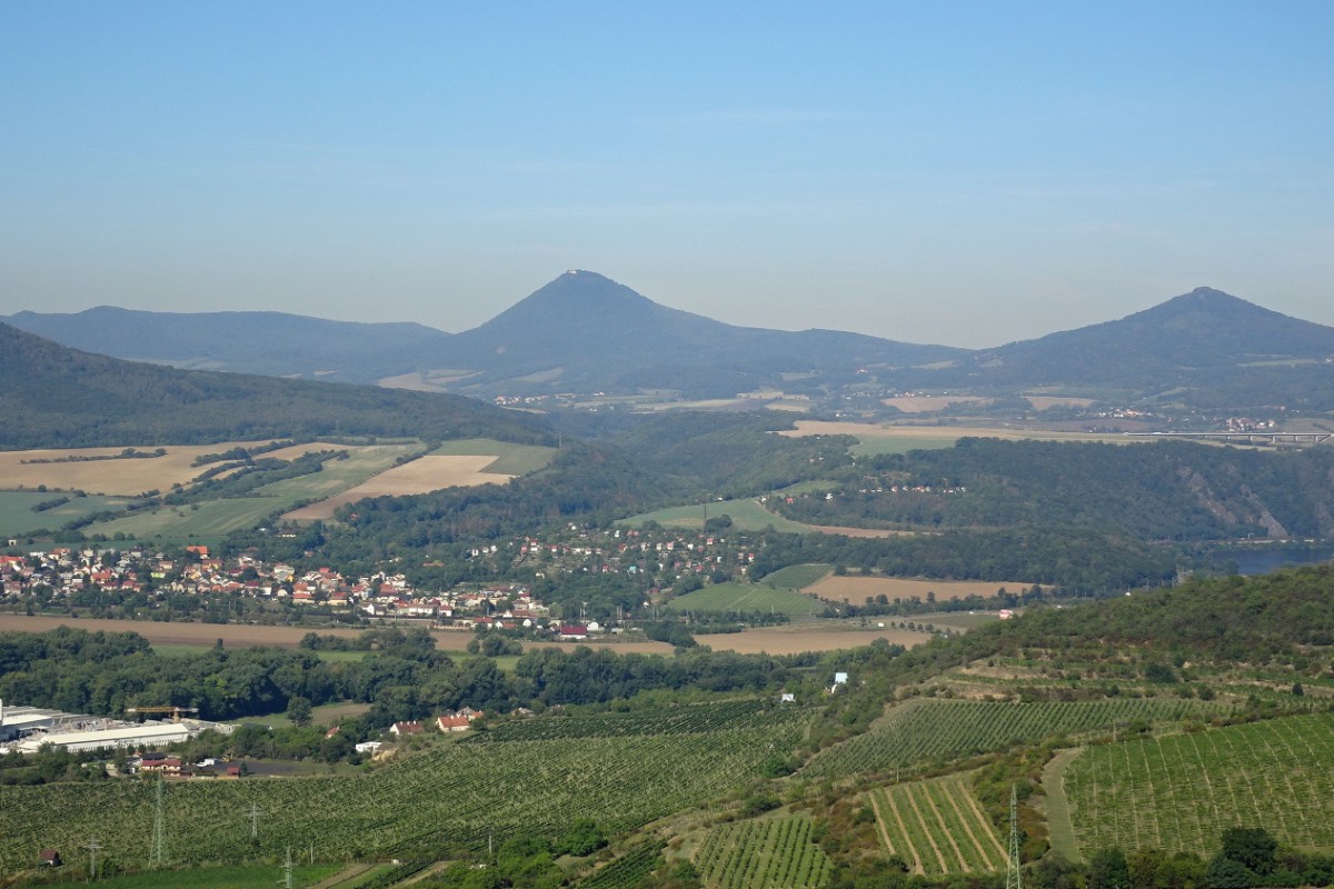 Nějaký ten pátek už jsem na něm nebyla a natěšeně jsem čekala na vhodný den s pěknou viditelností. Ve středu 4. září ráno sluníčko svítilo a slibně na mě mrkalo. V Litoměřicích jsem se sešla se svou kamarádkou, turistkou Věrou, a vyrazily jsme. Od silnice vede pěšina loukou. Na úpatí jsme se rozhodly podívat se nejdřív na dno onoho zdaleka viditelného zubu, způsobeného těžbou kamene. Skalní stěna je učebnicovou ukázkou sloupcové odlučnosti čediče. Pokochaly jsme se výhledem na České středohoří a vystoupaly "o patro výš", tj. na samé temeno Radobýlu s kovovým křížem. Věřte mi, srdce tu usedá a nechce se Vám odtrhnout oči od té krásy od obzoru k obzoru. Říp, Házmburk, Lovoš, Milešovka a nepřeberné množství středohorských kopců a kopečků. Pod námi se rozprostírá Žernosecké jezero. Méně úchvatný pohled je na továrnu Lovochemie v Lovosicích a panelárnu v Žalhosticích. Čas letěl a my jsme musely pokročit dál. Vrátily jsme se k silnici a těsně před Michalovicemi odbočily k tzv. třem vrškům. Jsou to takové zelené pupínky s překrásnými výhledy. Slezly jsme hezky jeden po druhém, na každém chviličku poseděly a pokračovaly dál přes osadu Knobloška k Bídnici. Tento vrch jsme přešly hezky po louce až k lesu na jejím vršku a podle lesa pomalu scházely do zahrádkářské kolonie na kraji Litoměřic. Pokračovaly jsme dál ke vchodu do neblaze proslulé továrny Richard zbudované právě v útrobách Bídnice. Jistě všichni víte, že tady v bývalém dole vybudovali nacisté ke konci války utajenou podzemní továrnu na výrobu zbraní. O život tu nedobrovolně přišlo mnoho lidí. Čekala jsem pietní místo, ale stály jsme před těžkými vraty. V ne zrovna upraveném prostředí je tabule s informacemi o Richardu. Kamarádka mi vyprávěla, že pamatuje jako dítě, že tam ještě byly koleje a odstavené těžební vozíky.