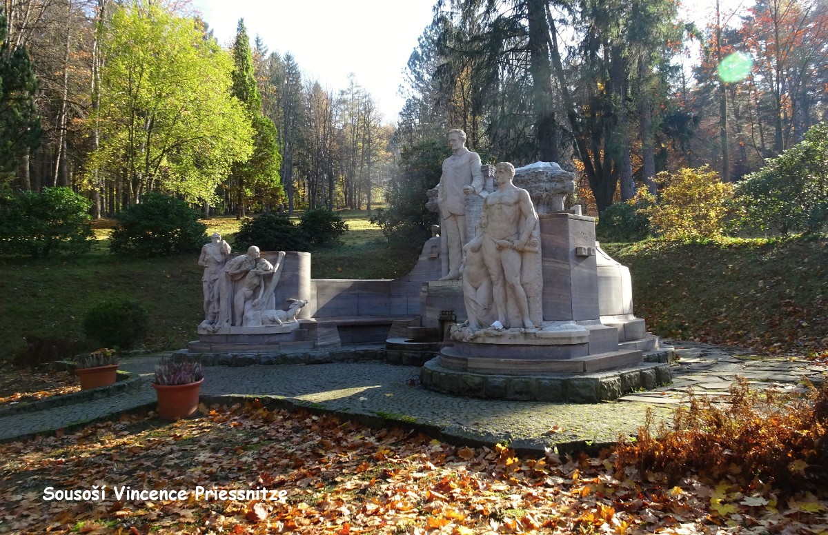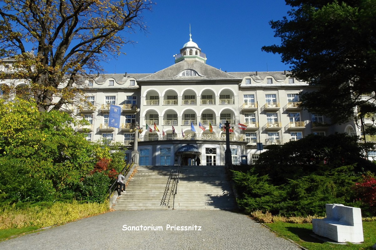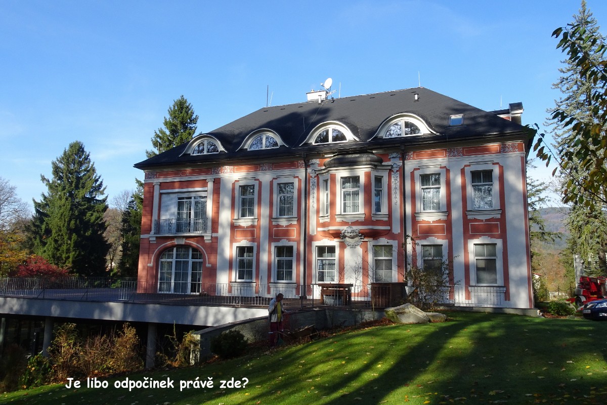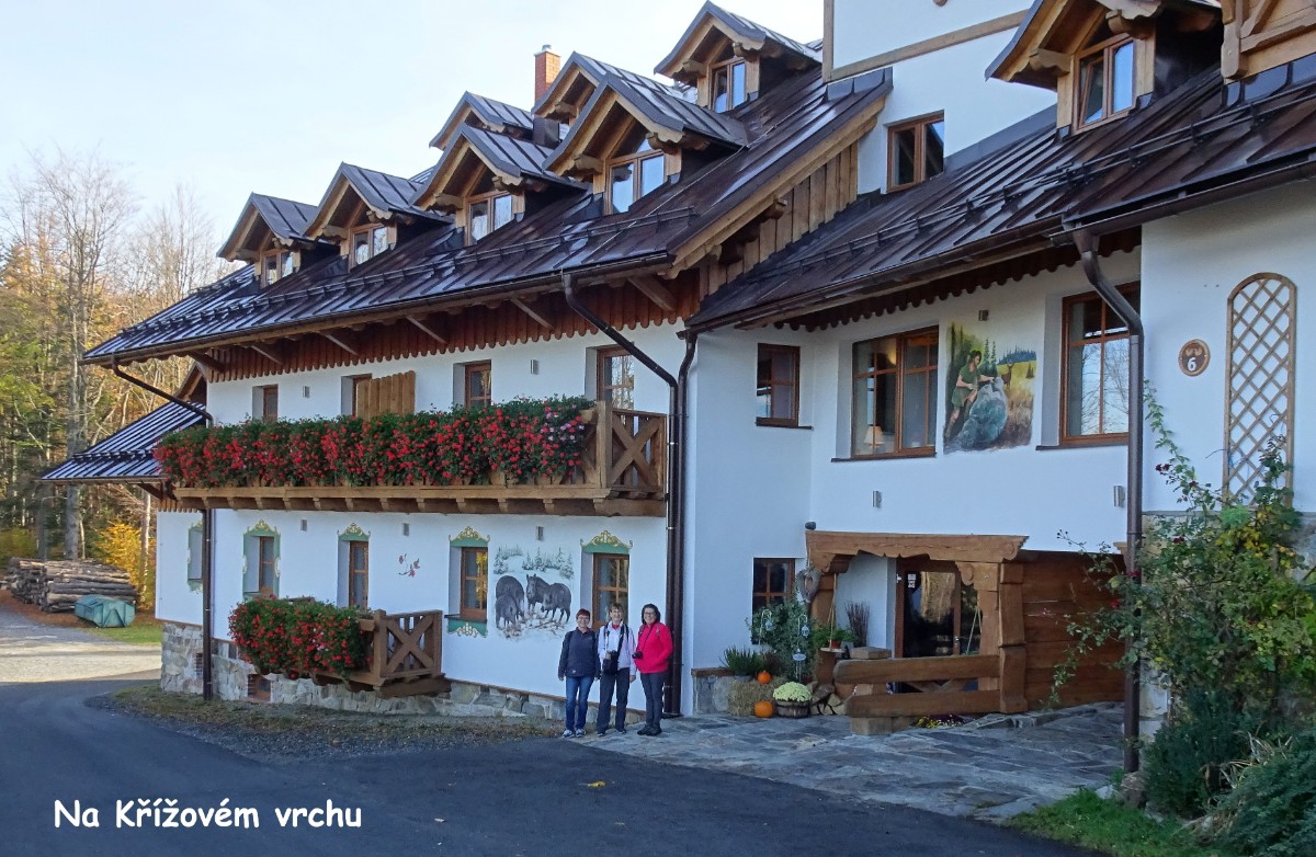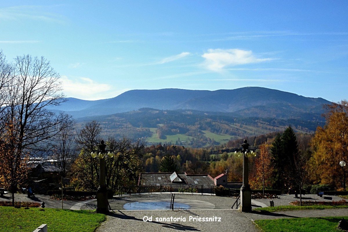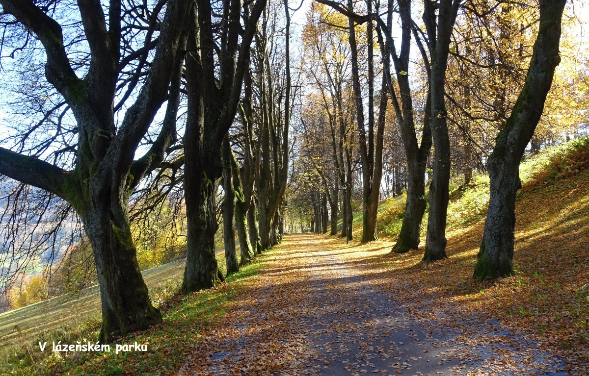 Prohlédly jsme si nejen pěknou výstavu, ale prošly se spolu Jeseníkem. Kvůli časovému presu jsme si nevyšláply vzhůru do lázní po svých, ale nechaly se tam dovézt. Po kávě v luxusním lázeňském domě Priessnitz jsme se vydaly na okružní vycházku lázeňským parkem. Podzim se nám předváděl v těch nejúžasnějších barvách, jaké si pro toto roční období můžete představit, a sluneční paprsky nás donutily sundat bundy. Obešly jsme park, protkaný mnoha cestičkami a vyzdobený památníky a prameny, podívaly se dolů na Jeseník, na protější Zlatý chlum a Křížový vrch i vzdálenější Praděd. Loudaly se Balneoparkem s Hájem víly Ozdravy, kde se nabízí nejrůznější způsoby vodní terapie, abych tak řekla od pitné kúry po kúry koupací. Ze stejného důvodu jsme se opět nechaly vyvézt na protější Křížový vrch, kde je kaplička a překrásný horský penzion. Odtud jsme sešly cestičkou křížem krážem podél křížové cesty. Elena mě provedla "svojí trasou", odkud nosívá krásné obrázky. Čas neúprosně ubíhal a po pohádkových dvaceti šesti jesenických hodinách se jen zaprášilo. Po čem se nezaprášilo ani nezapráší, to jsou vzpomínky na pěkné chvíle s kamarádkami, a mně nezbývá než znovu opakovat - díky, holky; díky přátelství napříč republikou; díky íčko, bez jehož síly bychom se nikdy nepotkaly.