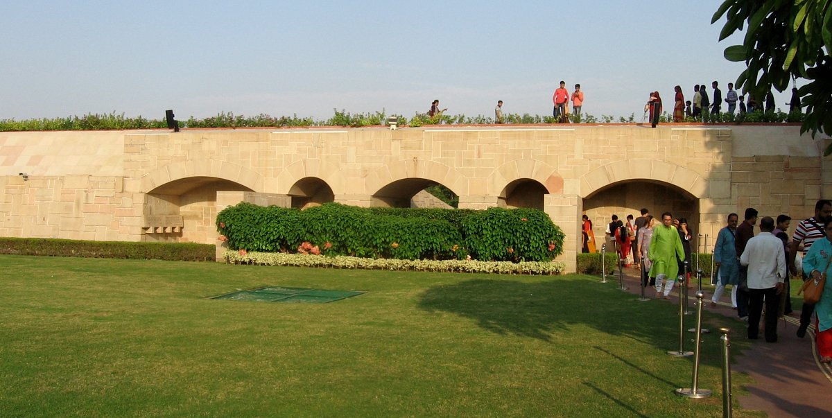 Následovala návštěva náhrobku Mahátmy Gandhiho (1869 -1948), zde byl spálen a popel byl vhozen do posvátné řeky Gangy. Kolem je park s fikusy od řeky Gangy. Vstup je opět přes bránu a boso po chodnících kolem náhrobku, kde hoří věčné světlo. Každý den se vyměňuje výzdoba z afrikánů. Následoval odjezd do hotelu na ubytování a večeři.