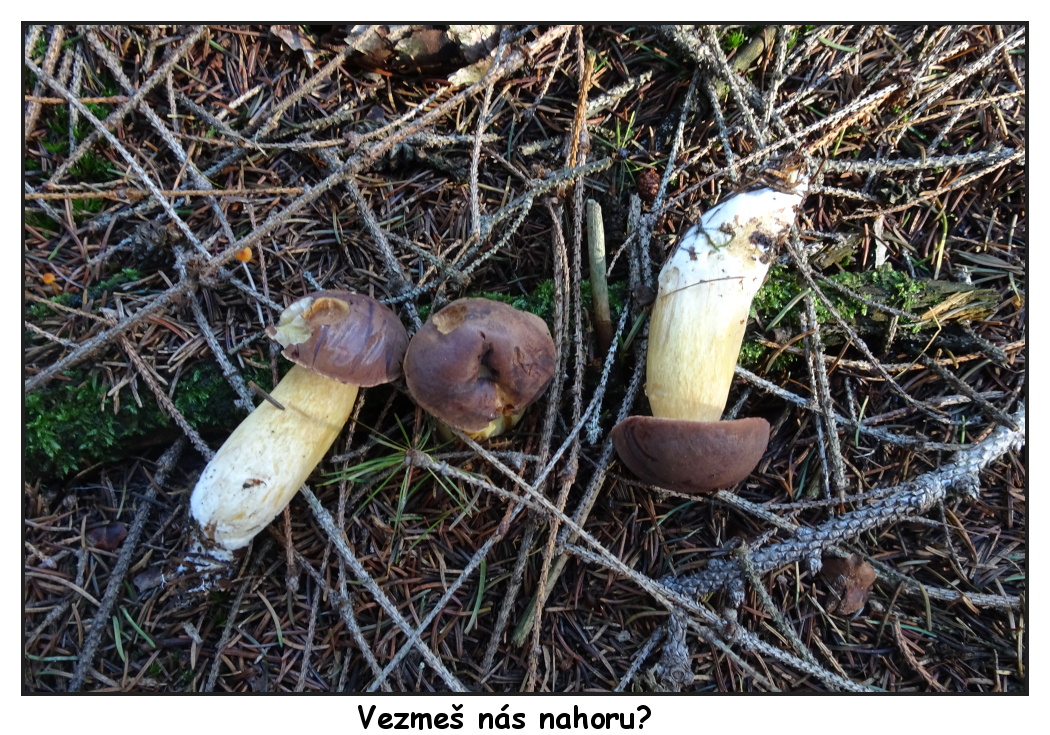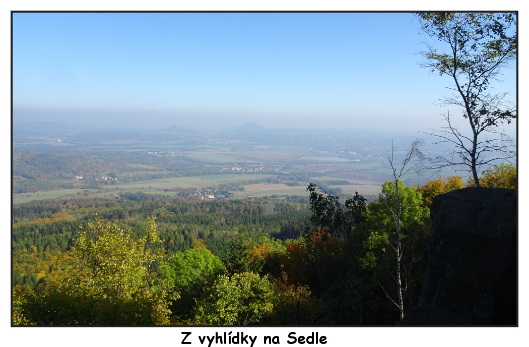 Za krásného podzimního dne se téměř vedle lesní cesty na mě smály hnědé hlavičky, které se nutně chtěly podívat na Sedlo, a tak jsem jejich prosbě vyhověla a nahoru vynesla i osm hříbků. Raději jsem už lesní cestu neopouštěla, neb hrozilo, že bych pod houbí vahou horu nezdolala. Když lesní pěšina vyústila na zpevněnou cestu se žlutou značkou, zavelela jsem si vlevo v bok. Komu chybí skutečnost, že jsem už dlouho nezabloudila, tak teď si přijde na své. Po nějaké době pochodu jsem se ocitla na konci lesa, u silnice se závorou. O závoru se opíral chlap, u nohou koš, v koši pořádnou kudlu. Na mou otázku, kudy na Sedlo, jen pohrdavě opáčil: jo ták, Vy jste turistka! Šla jsem chvíli po silnici, než mi došlo, že přede mnou jsou Lovečkovice a tudy na Sedlo opravdu nevyjdu. Tak hajdy nazpátek, přidala jsem si dobré dva kilometry. Samozřejmě že jsem měla odbočit doprava.