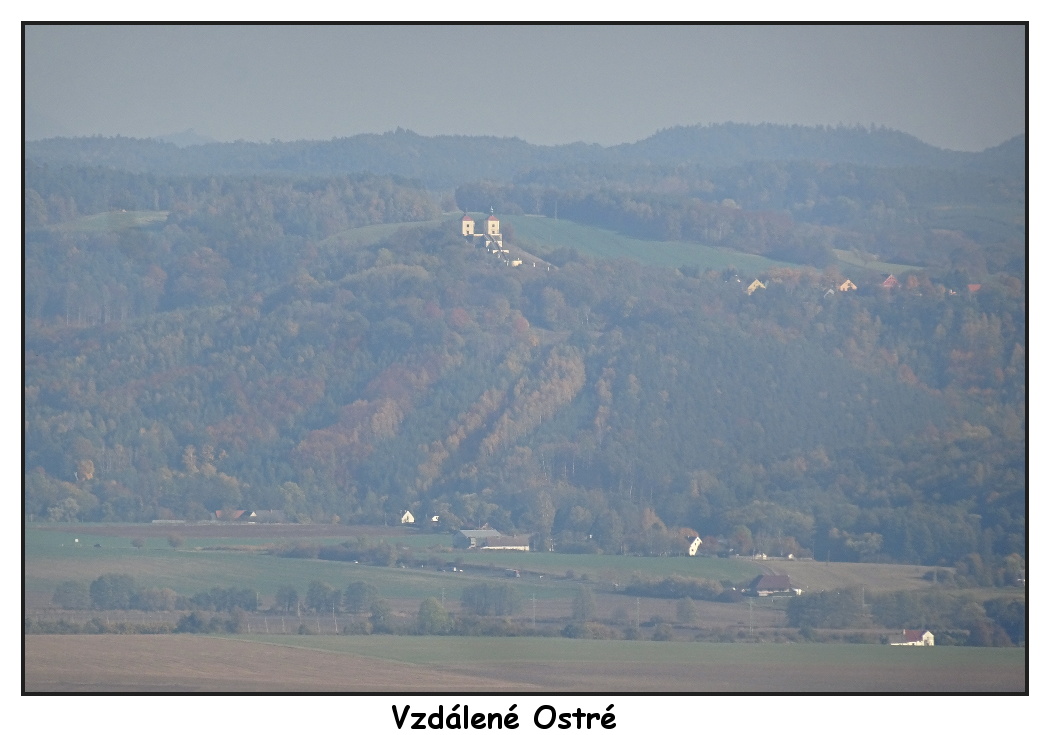 Další cesta už ubíhala, jak měla a míjela jsem správně rozcestníky a střídala barvy značení podle itineráře, který jsem si připravila. Za posledním rozcestníkem, kde stálo - Sedlo, vrchol 1 km, začalo stoupání. A nepřestalo, ba co víc, bylo stále prudší. V duchu (i nahlas) jsem si lála, jestli to mám zapotřebí, nevěděla jsem, jak polezu dolů, a přesto hnána vidinou odškrtnutí Sedla na seznamu visícím doma na ledničce, hrabala jsem se vzhůru, jak to šlo. Vůbec jsem nechápala, jak tudy v sobotu mohli běhat závodníci, po nichž ještě v lese zůstaly cedule - dejte přednost závodníkům. Proti mně opatrně krok sun krok sestupovali tři chlapíci, které jsem chtěla vyzpovídat, ale po jejich pozdravu tópry den mi bylo jasné, že zbytek cesty si prozkoumám neinformovaná, hezky sama a na vlastní triko. Strom s vrcholovou značkou jsem objímala jako nejlepšího přítele. Sedla jsem si na kámen a vytáhla z batohu termosku s kávou. Musím přiznat, že radši bych tam měla jiné grády. Zavolala jsem kamarádce, s tím, že sedím na Sedle a nevím, jak z něho dolů. A byla jsi na té skalce s výhledem?, zněla odpověď. Teprve jsem se uklidnila, rozhlédla se a zjistila, že vrcholová plošinka je příjemným osvěžením. Je protkána vyšlapanými stezkami, je na ní kamenný pomník s křížkem, ohniště a kýžená vyhlídka do kraje. Je z ní vidět Úštěcko, přes modrou oblohu však nebyla nejlepší viditelnost, na obzoru seděl tmavý pruh. Něco mi říká, že někde tam je i vyhlídka jižním směrem. Přiznám se však, že už jsem ji ani nehledala, ani jsem nepokračovala dál, abych se okružní cestou vrátila do Starého Týnce. Dílem po svých nohách, dílem po obou svých půlkách, jsem se vydala zpátky dolů a ze Sedla se vyhoupla bez úhony.