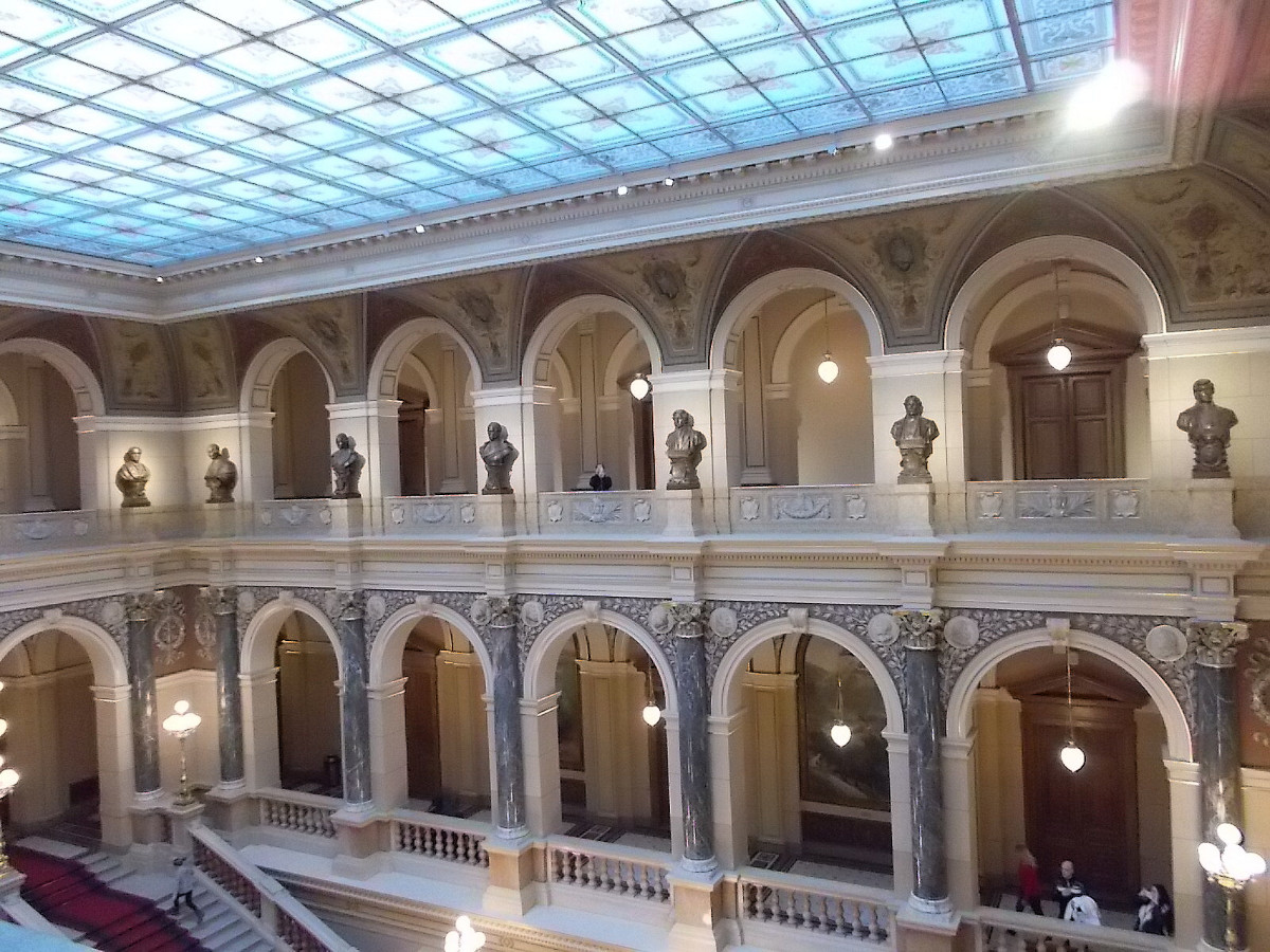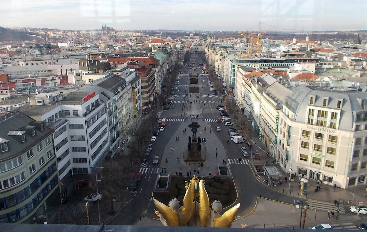Přiznám se bez mučení, že jsem tak trochu kulturní barbar. Výstavy, koncerty, divadlo nejsou zrovna můj koníček, ale chtěla jsem muzeum v novém hávu vidět a tak trochu si zavzpomínat. A opravdu se bylo na co dívat, muzeum je krásné z venku i zevnitř. Výstava Tutanchamon byla celá v audiovizuální podobě, prošli jsme vše, co bylo v nabídce, vynechala jsem jen Sametovou revoluci, nemusím vidět všechno. Pohled z kupole na Prahu byl nádherný, bohužel nešlo moc fotit, hlídací paní nás odháněla od oken, takže to je na některých fotkách trochu vidět. Prošli jsme spojovacím koridorem i do bývalé budovy FS, která nyní slouží jako muzeum, ale nic k vidění tam nebylo. Pohledem na Václavské náměstí jsem si vybavila pár nostalgických vzpomínek na školní léta, kdy jsme tam chodily tancovat, kino Blaník bylo také naše oblíbené. To už není ani pravda.