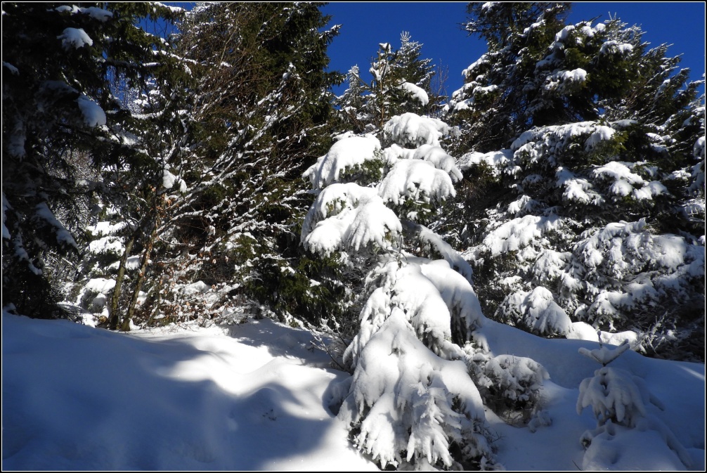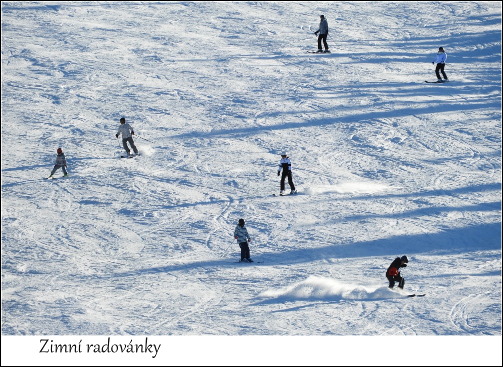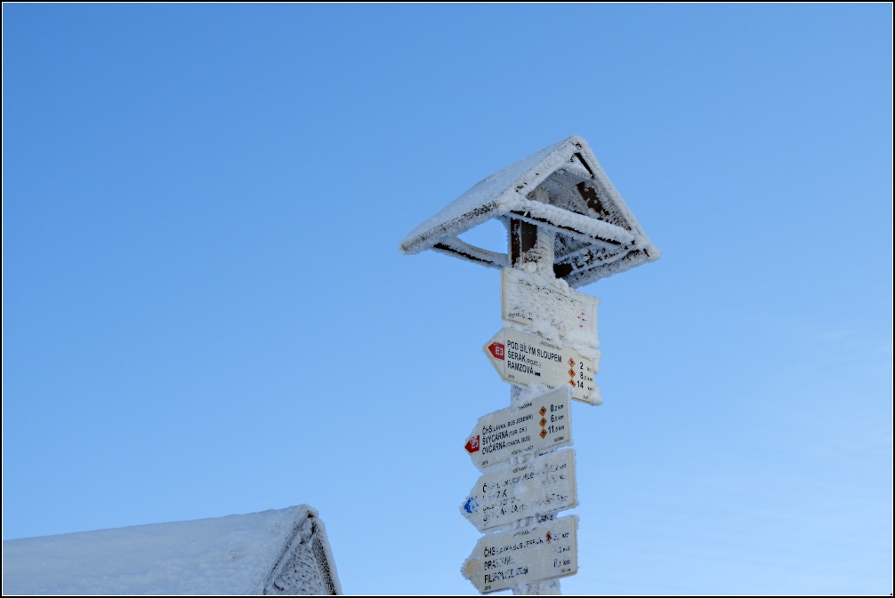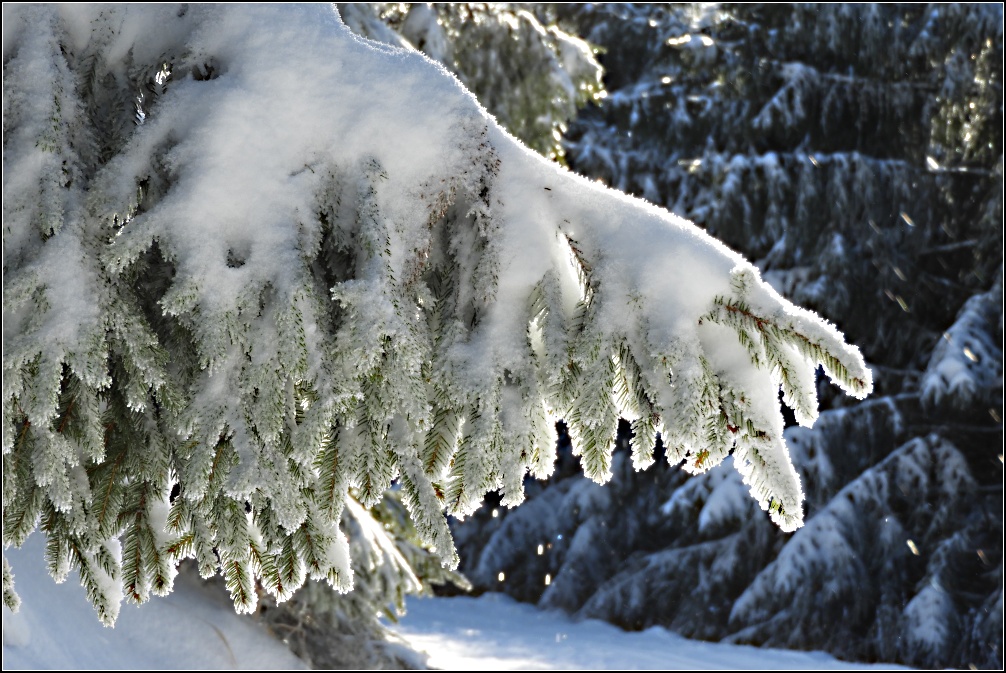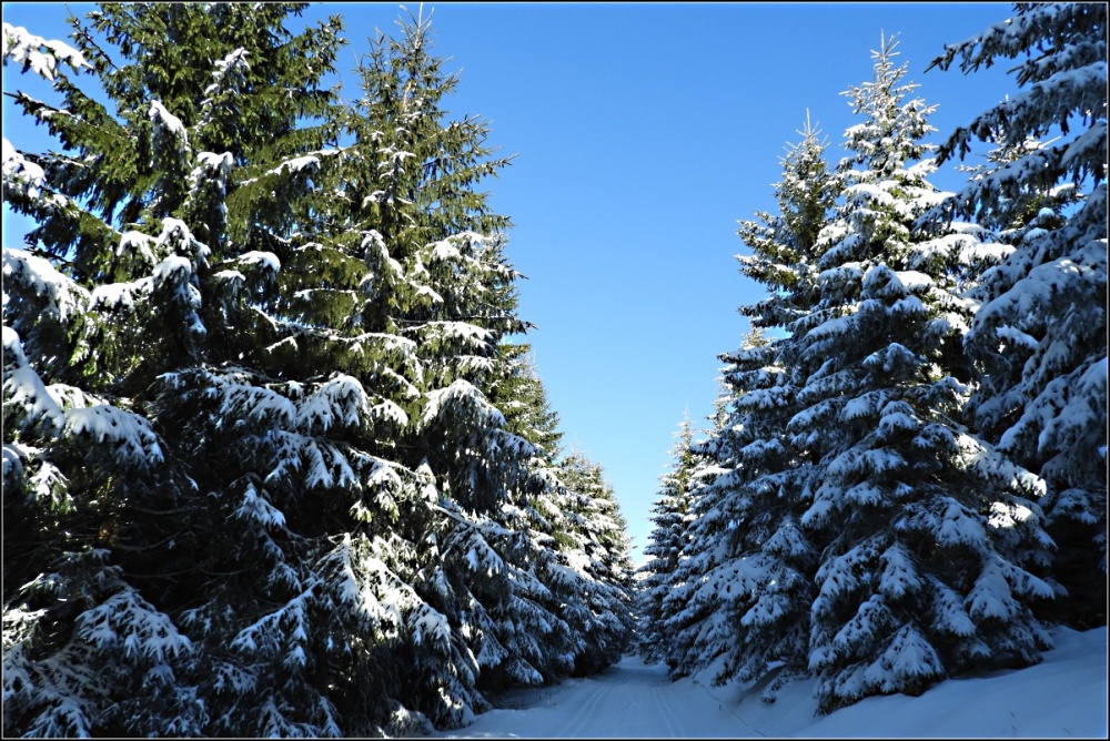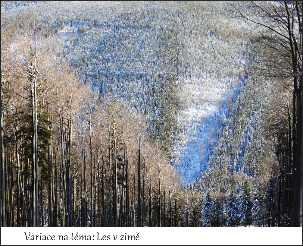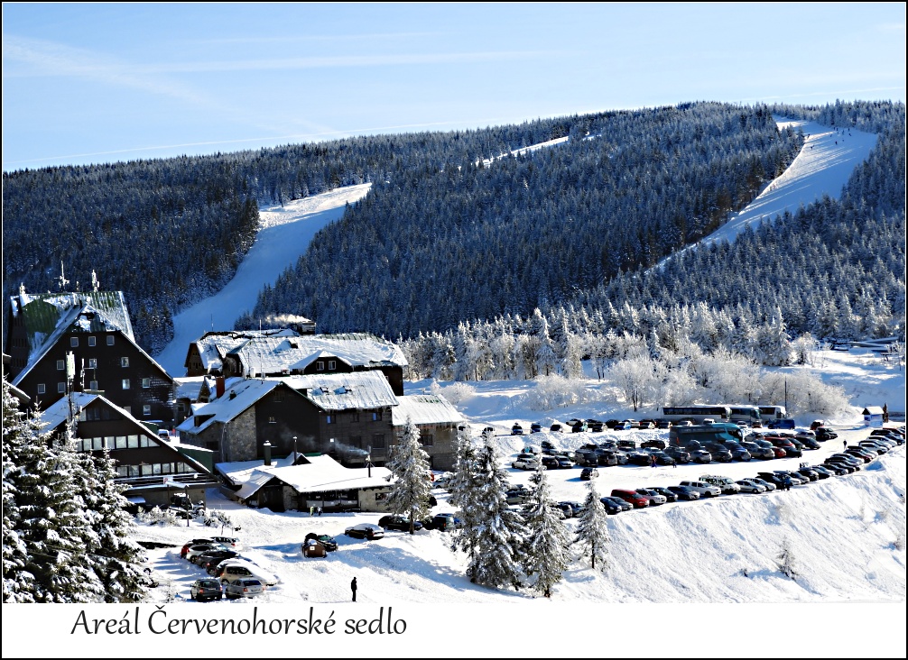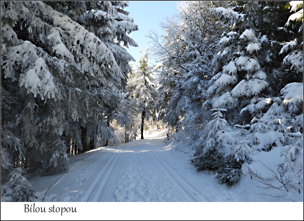 V deset hodin nasedáme do autobusu a jedeme přes Jeseník, který lemují pocukrované kopečky, na Červenohorské sedlo. Již v Bělé pod Pradědem nás překvapí první hromádky odhrnutého sněhu okolo komunikace. A pak vjíždíme do pohádky. Cestu lemují obalené stromy vatou, ale ne – sněhem. Stráně svítí v dopoledním slunci a proti nám se vzpíná zasněžený horský masiv. Jsme jak v Jiříkově vidění. Skutečná zimní krajina. Opravdová zima a jen kousek za humny.