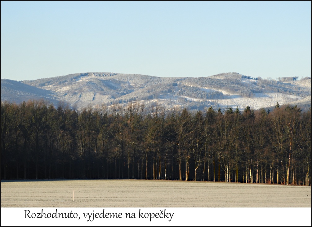 Ráno to za oknem jiskřilo, jinovatka, modrá obloha, slunce. Nádhera. Mrazivá nádhera. Vyrazila jsem na louku nad domem a v tu ránu jsem byla ztracená. Věděla jsem, že musím někam na kopečky, které kolem dokola zářily tou trochou sněhu v ranním slunci.