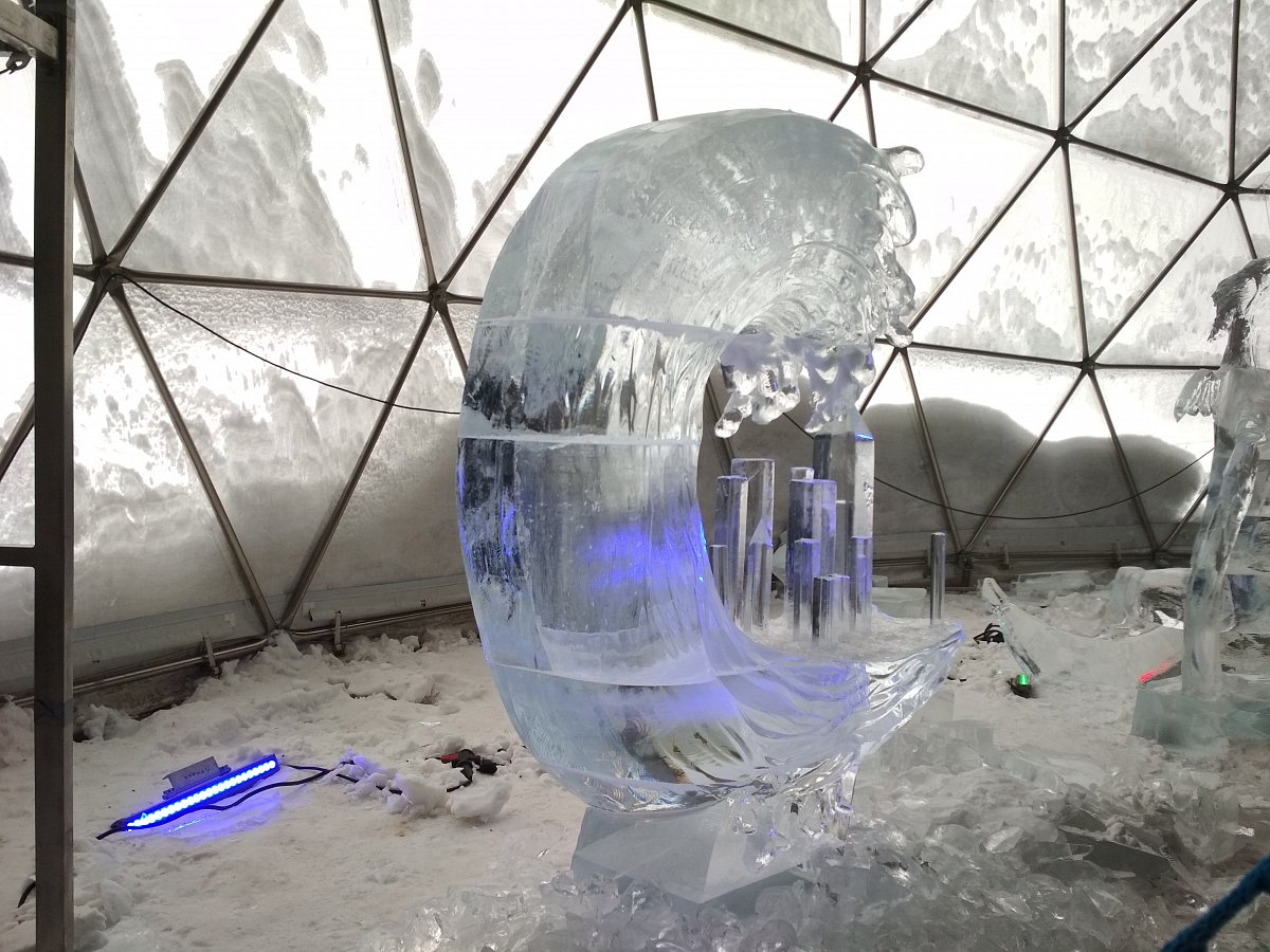 Polokoule mají průměr 25 m a výšku 11,5m. a jsou stále chlazeny. V jedné jsou soutěžní sochy a v druhé Tatranský dóm. Letošní téma je pocta Notre-Dame, neboli Chrámu Matky Boží v Paříži. Je to stavba UNESCO, která přišla 15.4.2019 požárem o část své krásy. Hlavním stavitelem byl jako každý rok Adam Bakoš a podílelo se na tom 18 sochařů z Česka, Litvy, Slovenska, Polska, Německa. Také spolupracoval i sklář Achilleas Sdoukas. Na stavbu se použilo 1880 kvádrů ledu a vážily 225 tun. Také letos se tu pořádají koncerty a svatby.