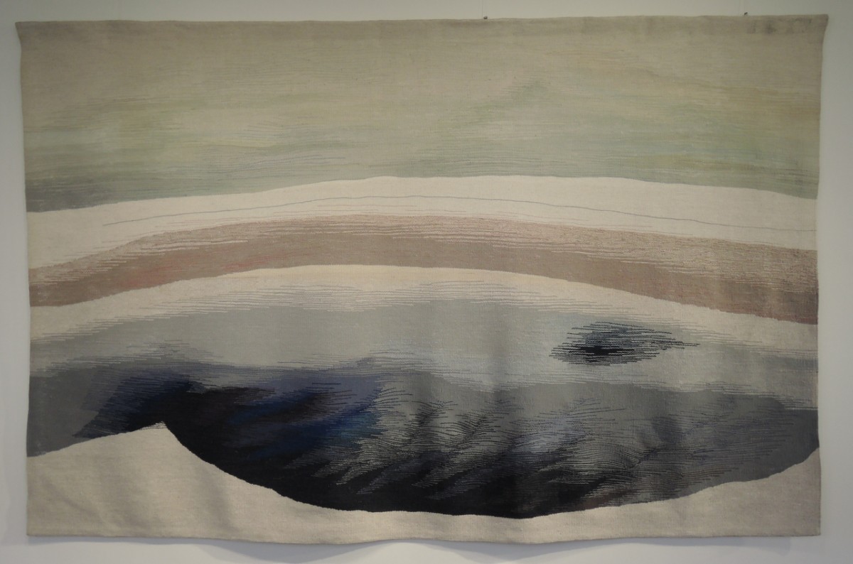 Cestou domů mě napadlo se podívat do Ambitu kláštera františkánů u Panny Marie Sněžné na Jungmanově náměstí. V minulosti jsem tam byla na zajímavých výstavách a ani tentokrát jsem nebyla zklamaná. Je tam krásná výstava tapiserií "Ztišení" paní Evy Brodské. Výstava končí už 23.2. takže pokud to nestihnete, tak vám ji alespoň trochu přiblížím, tady jsem fotit mohla. Tapiserie jsou v jemných barvách, spíše jsem cítila, že bych si před každou tapiserií nejraději sedla, zadumala se a nechala se naplňovat klidem, který z ní vychází. Z letáčku k výstavě jsem se dozvěděla, že paní Brodská žije v Roudnici nad Labem a její tapiserie jsou ve sbírkách tamnější Galerie. Také jsme s Věrou obdivovaly její 3 tapiserie, které jsou v augustiniánském klášteře v Roudnici. Vzpomněla jsem si, že se mi moc líbily a byla jsem ráda, že nás na ně průvoodce upozornil.