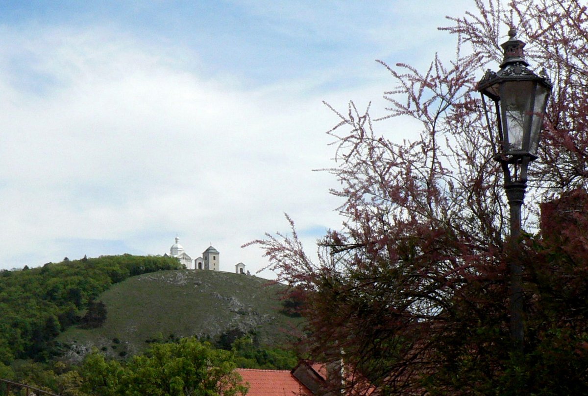 Tou poslední třešničkou na dortu je poutní místo s kostelíkem - Svatý kopeček, ze kterého je nezapomenutelný pohled na mikulovský zámek a na celé město. Vidíme i kousek za hranice do sousedního Rakouska.