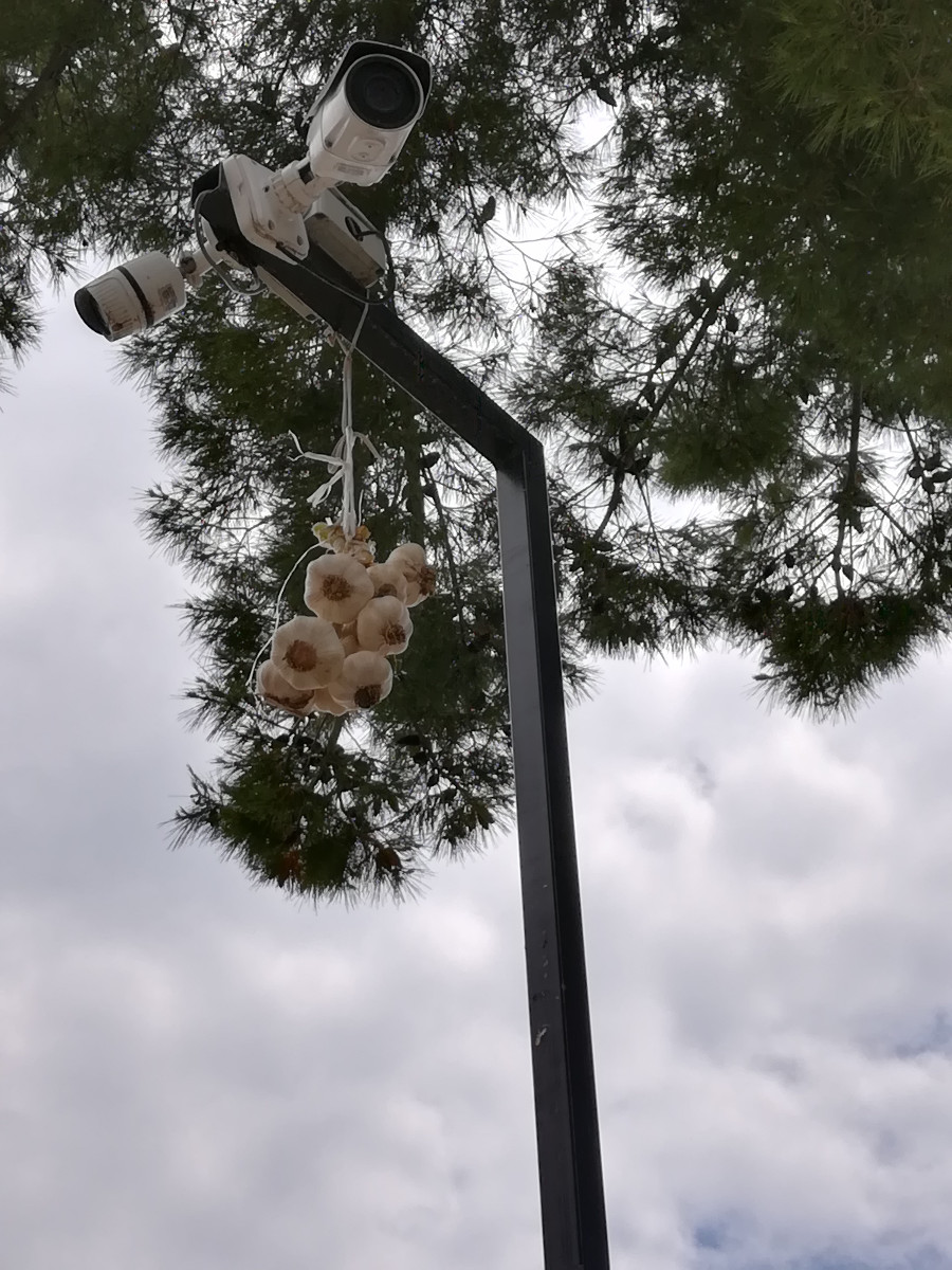 5 V ulicích Sarandy v jižní Albánii jsem všude viděl pouliční kamery. Někdo k jedné pověsil ještě česnek. Ten se používá, aby lidi chránil. Že by policistům rušil signál? Nebo se tu použil význam z květomluvy? Česnek prý znamená „jsi mi protivný“.