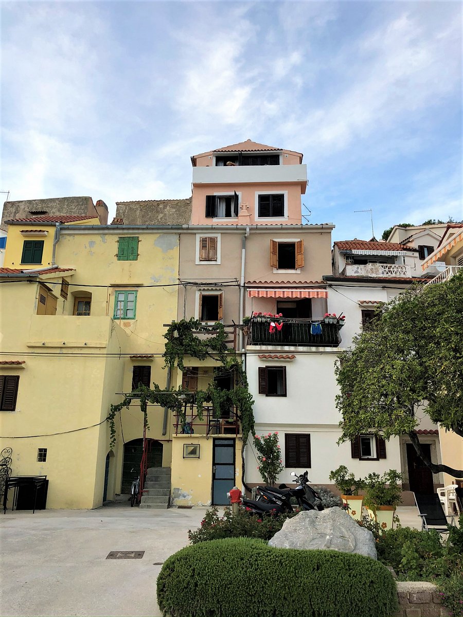 Našli jsme si apartmán v obci Malinska, ze které každý den vyjíždíme poznávat nová místa - starobylé město Krk se spoustou kavárniček a rybích restaurací, městečko Vrbnik přilepené na skále, s vynikajícím vínem Vrbnička žlahtina, proslulá a turisty vyhledávaná Baška s předlouhou pláží s modrou vlajkou, označující "TOP beach".