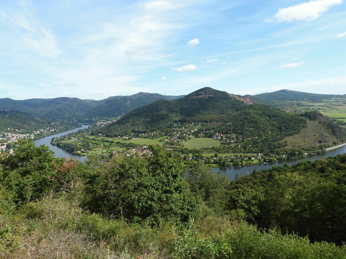 První cesta vedla snad skoro povinně do Dubiček ke kostelíku sv. Barbory se známou a hojně vyhledávanou vyhlídkou na Labe. Je to moje oblíbené místo a jsem ráda, že se mi podařilo dovézt tam další íčkaře a snad je i trochu zaháčkovat a vzbudit v nich touhu ještě někdy se tam podívat. Povzbuzeni výbornou kávou jsme pokračovali kolem pomníku Hanse Kudlicha s pluhem a Maruška tu na vlastní oči viděla, že Říp vyčuhuje opravdu odevšad. Pod Milešovkou jsme se proplétali středohorskými silničkami s báječnými výhledy a zastavili jsme v Sutomi. Tamní kostel jsem ještě nikdy neviděla otevřený, tak jsme museli nahlédnout. Měli jsme štěstí. Uvnitř na lešení nad oltářem nás pozdravili restaurátoři, kteří mu vracejí zašlou krásu, a pozvali nás na další návštěvu - tak za pět let.