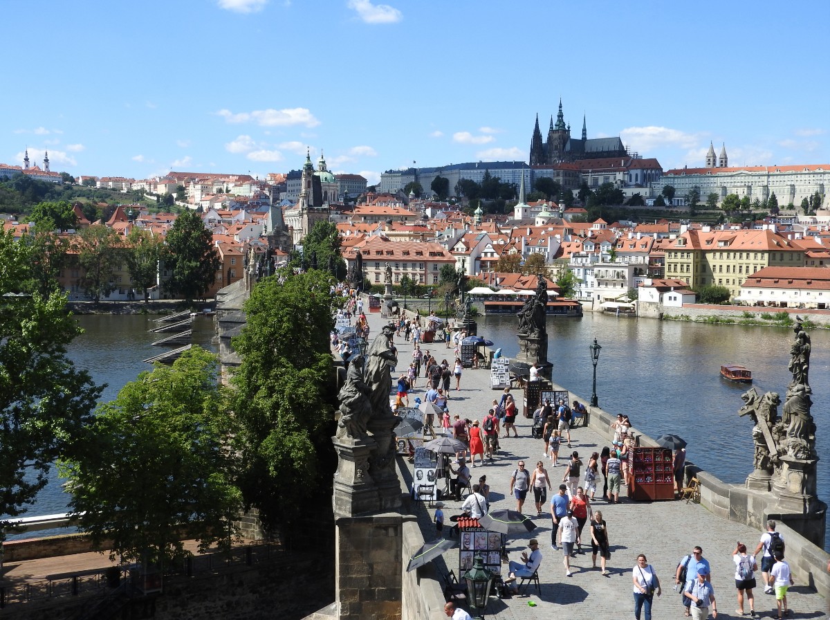 Na Karlův most z Křižovnického náměstí procházíme Staroměstskou mosteckou věží, gotickým skvostem z huti Petra Parléře. Stačí projít dveřmi a vydat se vzhůru. Po zdolání 138 schodů stane lehce udýchaný návštěvník na kamenném ochozu a užasne.